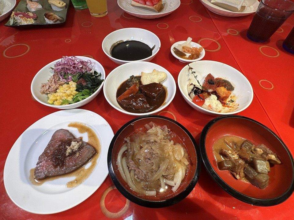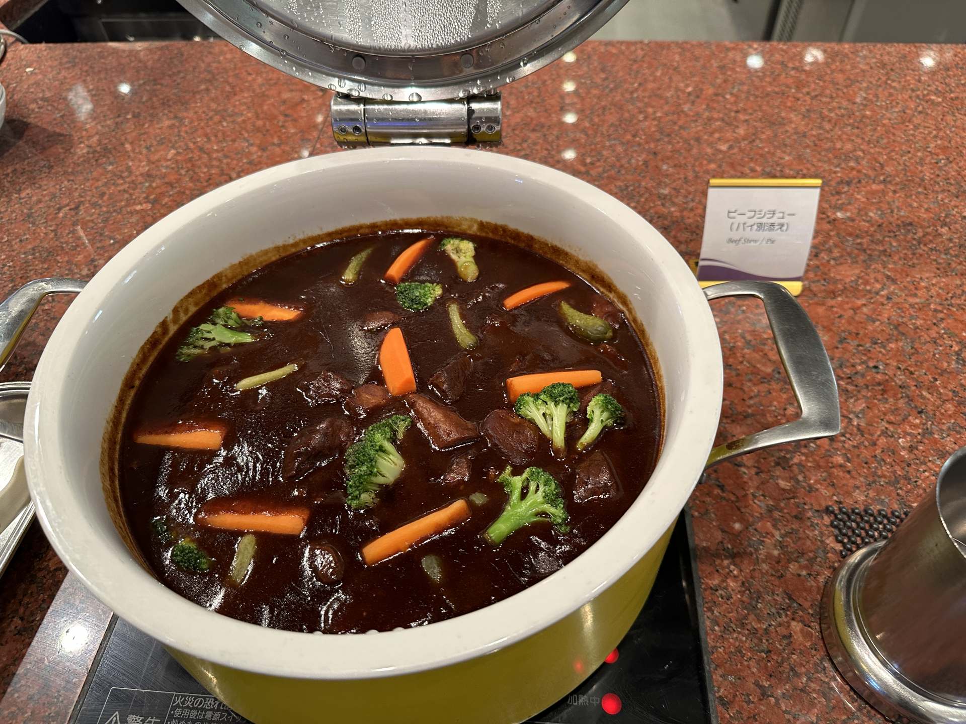 目の前でカットしてくれるローストビーフから、特別感と高級感が漂ってきます。肉の内部がジューシーで柔らかく、旨味が溢れています。