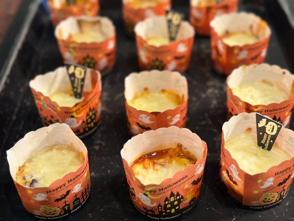 カラ傘おばけのケーキ/キャンドルチーズケーキ/バラのケーキ/モンブラン/ミイラのチョコタルト/パンプキンパイ/ブドウのパンナコッタ/ハロウィーンチョコ/ブラックモンスター(ミニおはぎ)/マカロン/ドーナツ/わらび餅/フルーツゼリー