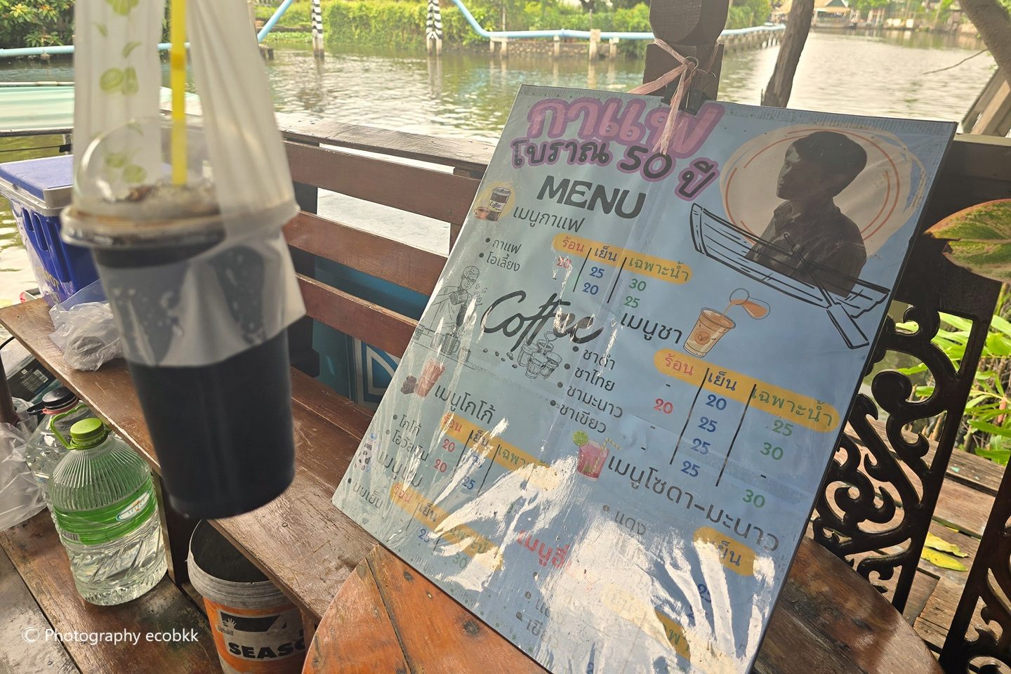 訪問時、ソンクローン水上マーケットでは、船の上で、コーヒーを作って販売してくれるお店「カフェボラーン」がありました。非日常を感じられて、とても楽しかったです。こちらのお店は、しっかりとした濃いめのコーヒーが特徴のお店で、良心的な値段で、なおかつ、量もたっぷり。メニューにある「カーフェ―・イエン(25バーツ)」には練乳が入り、「オーリアン・イエン(20バーツ)」は練乳が入らないとのこと。どちらも何も言わなければ、砂糖もしっかり入って提供されますので、甘くないのがよい方は、「マイサイナムターン(ノーシュガー)」と言いましょう。