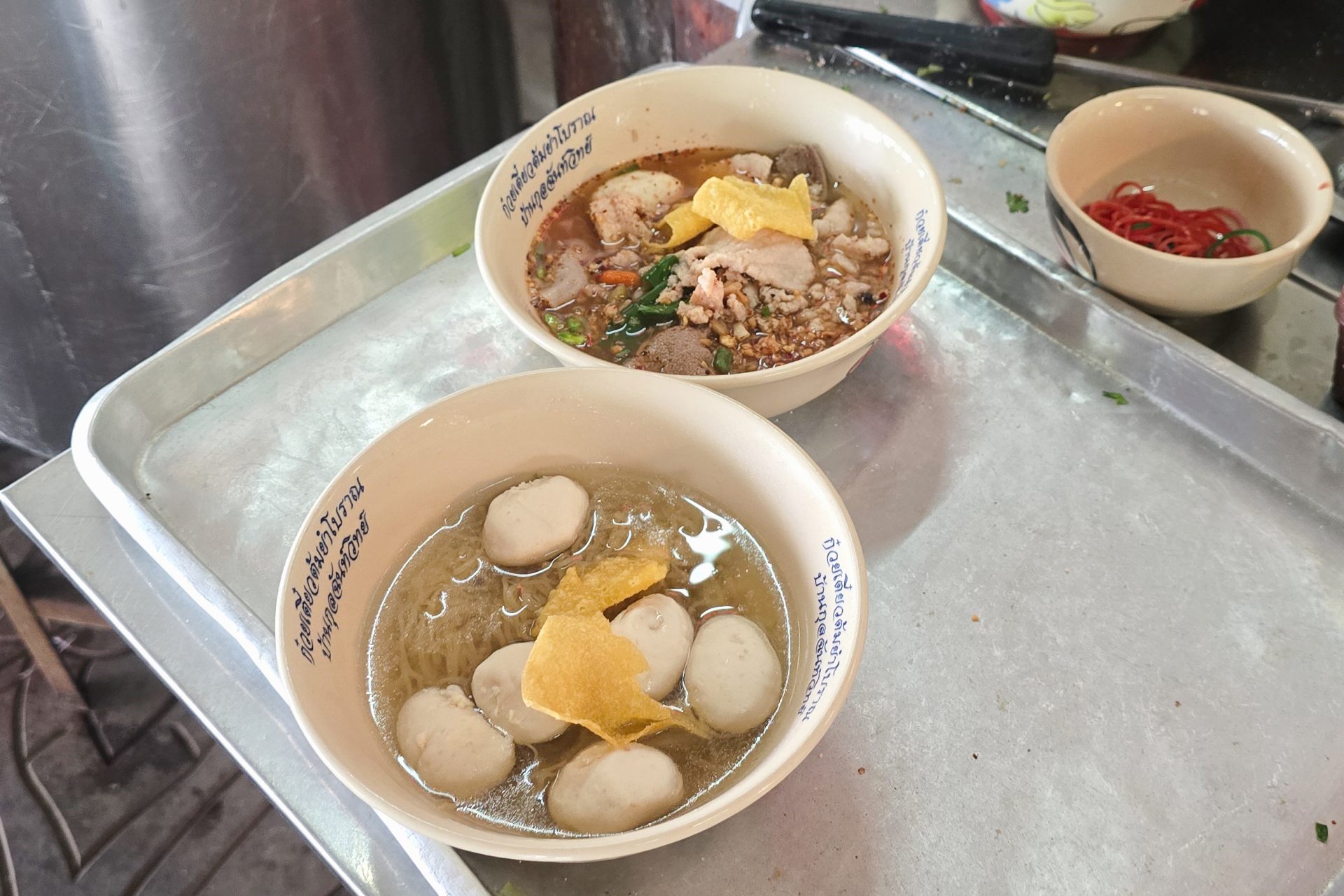 また、その近くで販売されるタイヌードルが、タイではよくありがちの甘さが少なく、私はバーミー(中華麺)を選びましたが、麺も具もスープも全てとてもおいしく感じました。表記がタイ語のみなので、オーダーが難しく感じる方がいるかもしれませんが、タイのヌードル店では、基本的には、麺の種類を言うだけで大丈夫です。日本人の方は、「バーミー(中華麺)」または「コイッティアウ(ベトナムのフォーの麺に似た米粉で作られた中太麺)」を選ぶのが無難ではないかと思います。