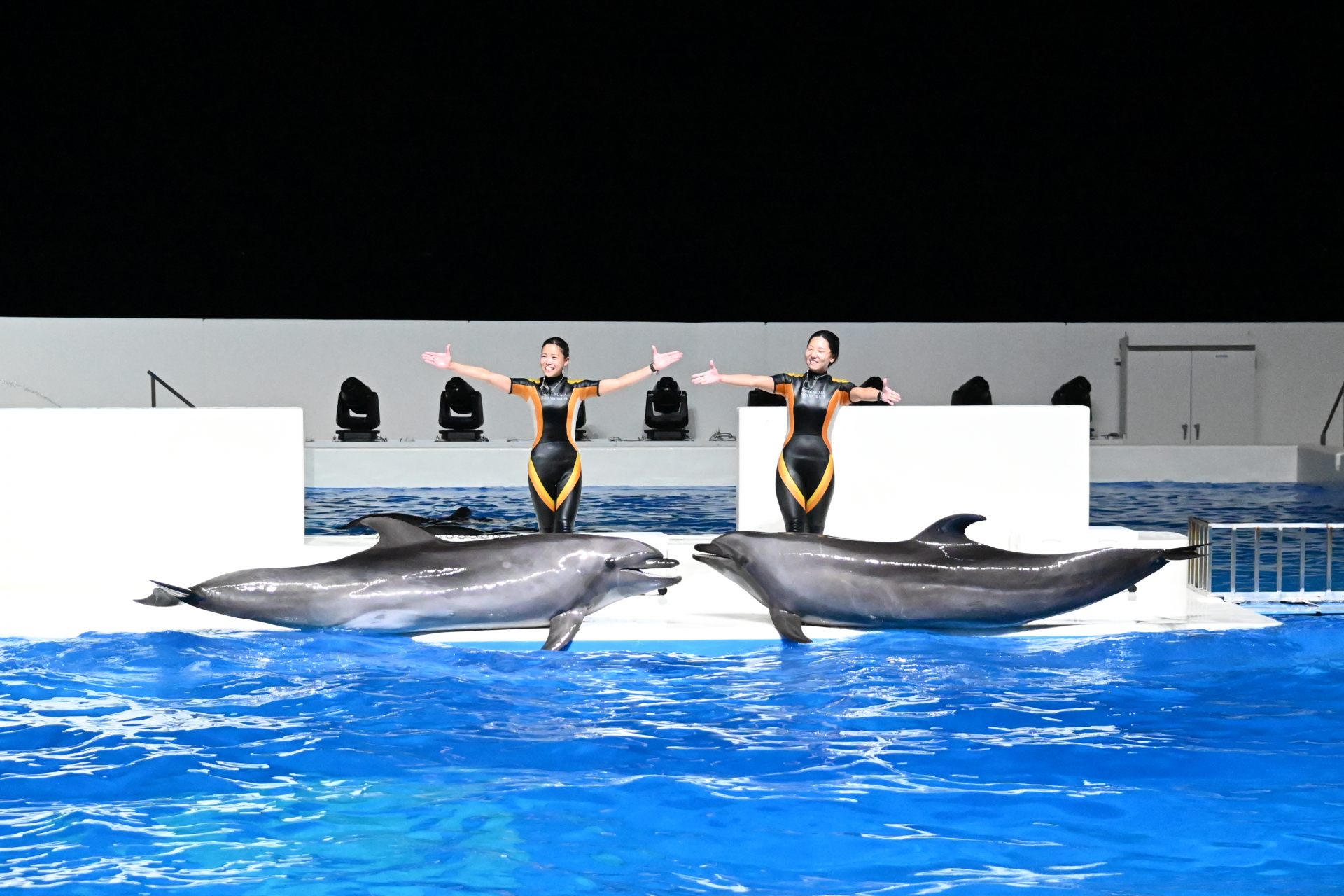イルカショーは泳ぐスピードと揃った演技が見どころです。