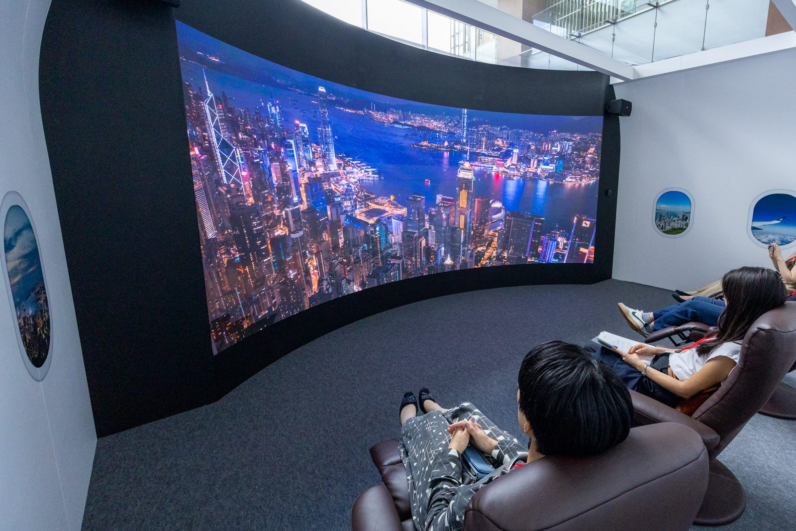 今回のイベントの目玉は、2024年からB777-300ER型機で導入を開始する「アリア・スイート」という新しいビジネスクラスをミニシアターコーナーで体験できるものです。映像をみると、フルフラットのベッド、24インチの大型テレビなど、アリア・スイートは快適なフライトになるであろうという設備であることを感じました。長距離路線であればアリア・スイートの良さがさらにわかるでしょう。