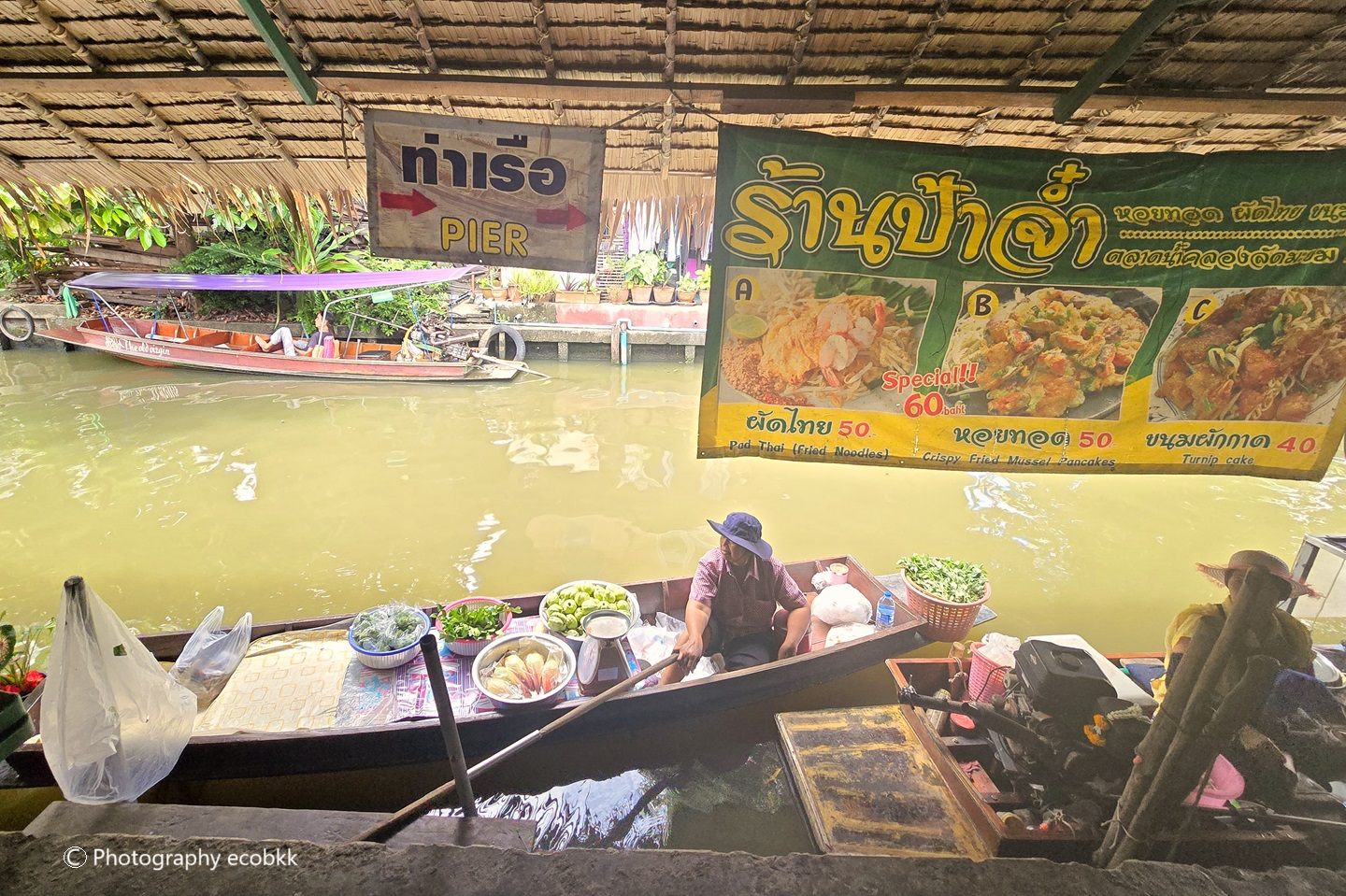 2024年09月25日付の記事「バンコク中心街から行きやすくなった!楽しい素朴なタイの水上市場2選~「ソンクローン水上マーケット」と「タリンチャン水上マーケット」を紹介」でソンクローン水上マーケット(Song Khlong Floating Market / ตลาดน้ำสองคลองวัดตลิ่งชัน)とタリンチャン水上マーケット(Talingchan Floating Market / ตลาดน้ำตลิ่งชัน)を紹介しましたが、今回は、クローンラットマヨム水上マーケット(Khlong Lat Mayom Floating Market/ตลาดน้ำคลองลัดมะยม)について紹介します。敷地が広く、お昼間、周辺道路が結構渋滞していたので、人気のエリアなのだと思われます。