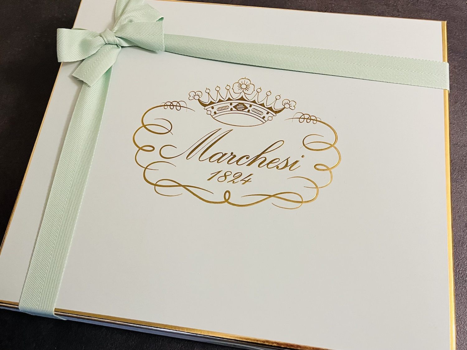 ミラノを代表するプラダグループの「マルケージ」には、落ち着いたパステルカラーの箱とリボンが特徴のギフトボックスがあります。