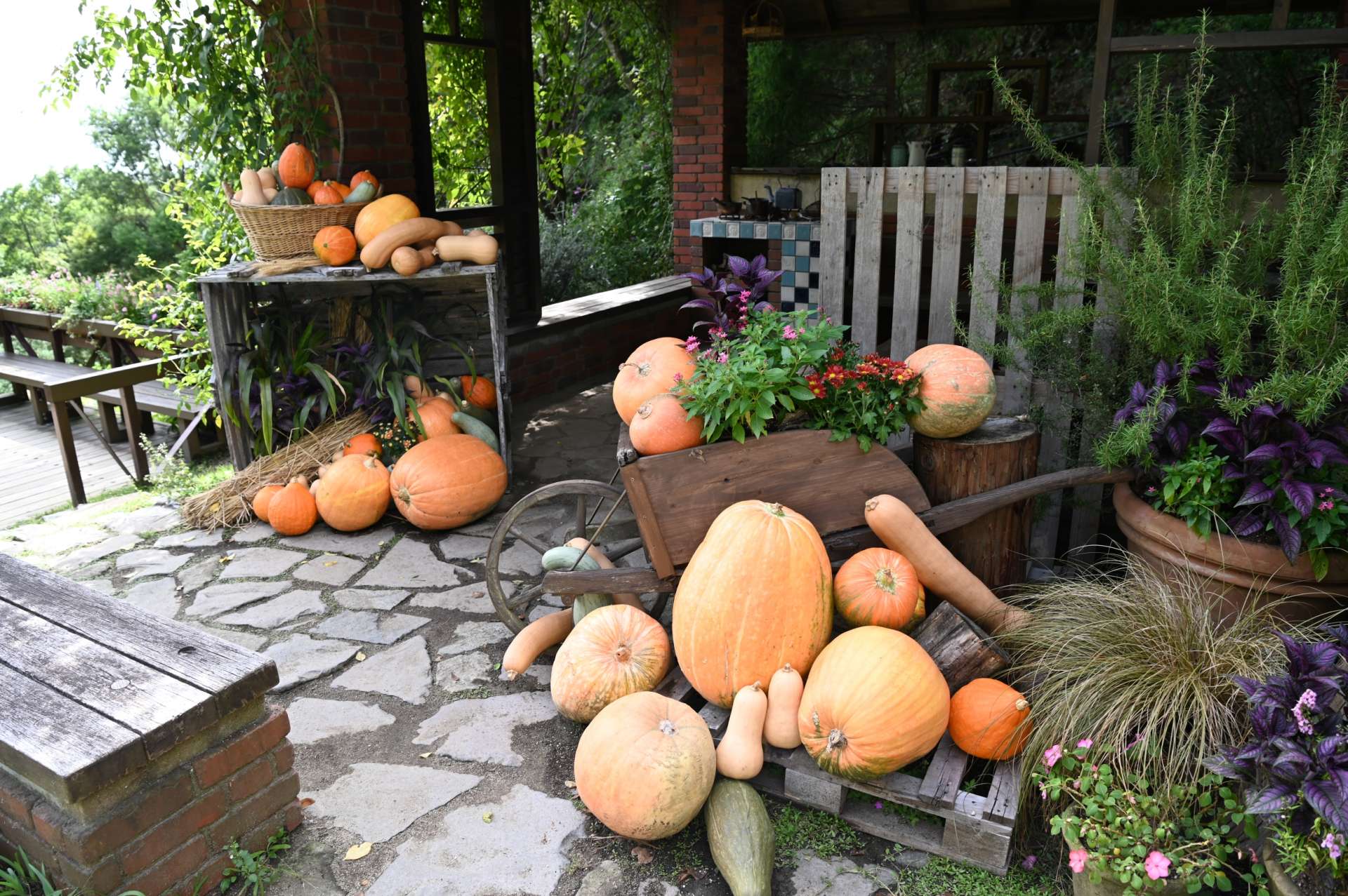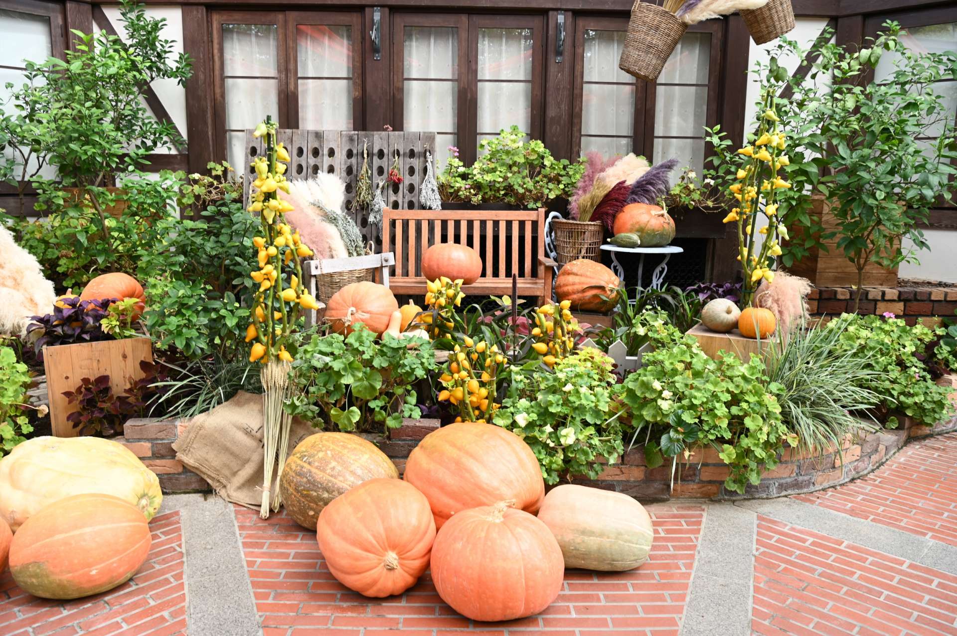 約200種75000株の花やハーブが楽しめる日本最大級のハーブ園である神戸布引ハーブ園では、もうハロウィンフェアが始まっています。可愛いカボチャのディスプレイと一緒に写真を撮りませんか。