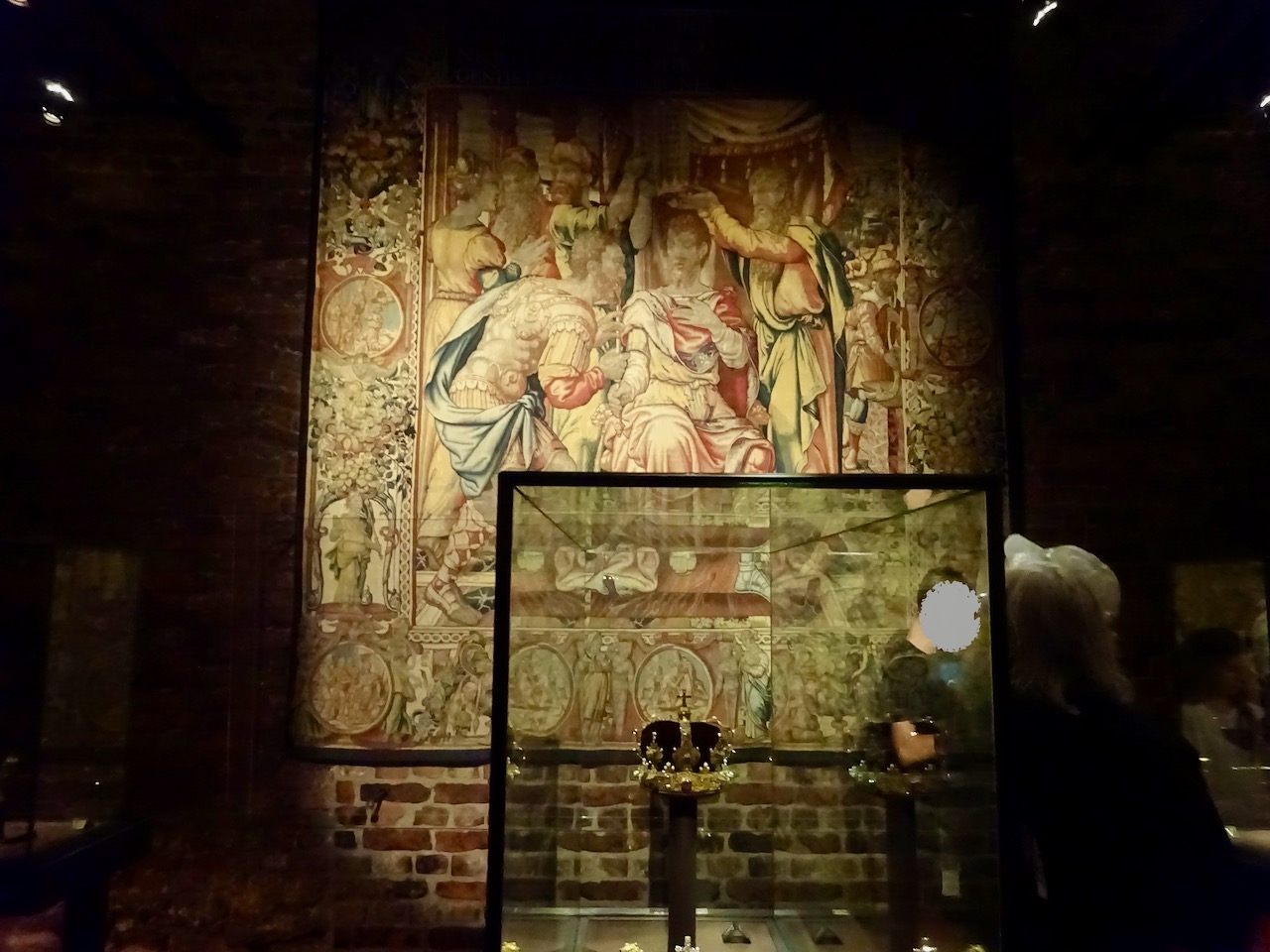 博物館の要素もあり、式典などで使われる代々の王冠や、王室ゆかりの品々の展示があります。