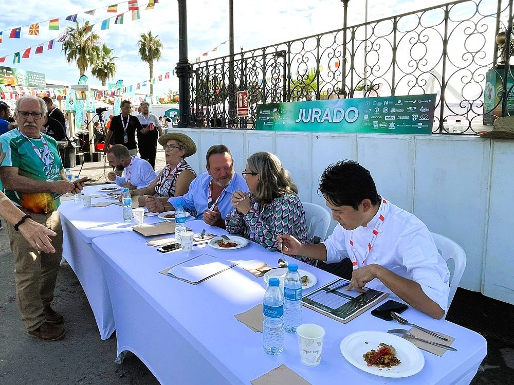 5人の審査員には、昨年の優勝者・京都のestilo hの畑下公平シェフの姿も。香りや味、オリジナリティ、お米の炊き加減、パエリアには欠かせないお焦げのでき、などが審査のポイントになるそうです。もうひとつの伝統的なバレンシア風パエリアのコンテストでコーディネーターを務めるパエリアマスターのヘスース・メレロ氏は「オリジナルと言っても、具材がパエリアにマッチしているか、全体でパエリアという料理にまとまっているかも見極めないといけない」と言っていました。