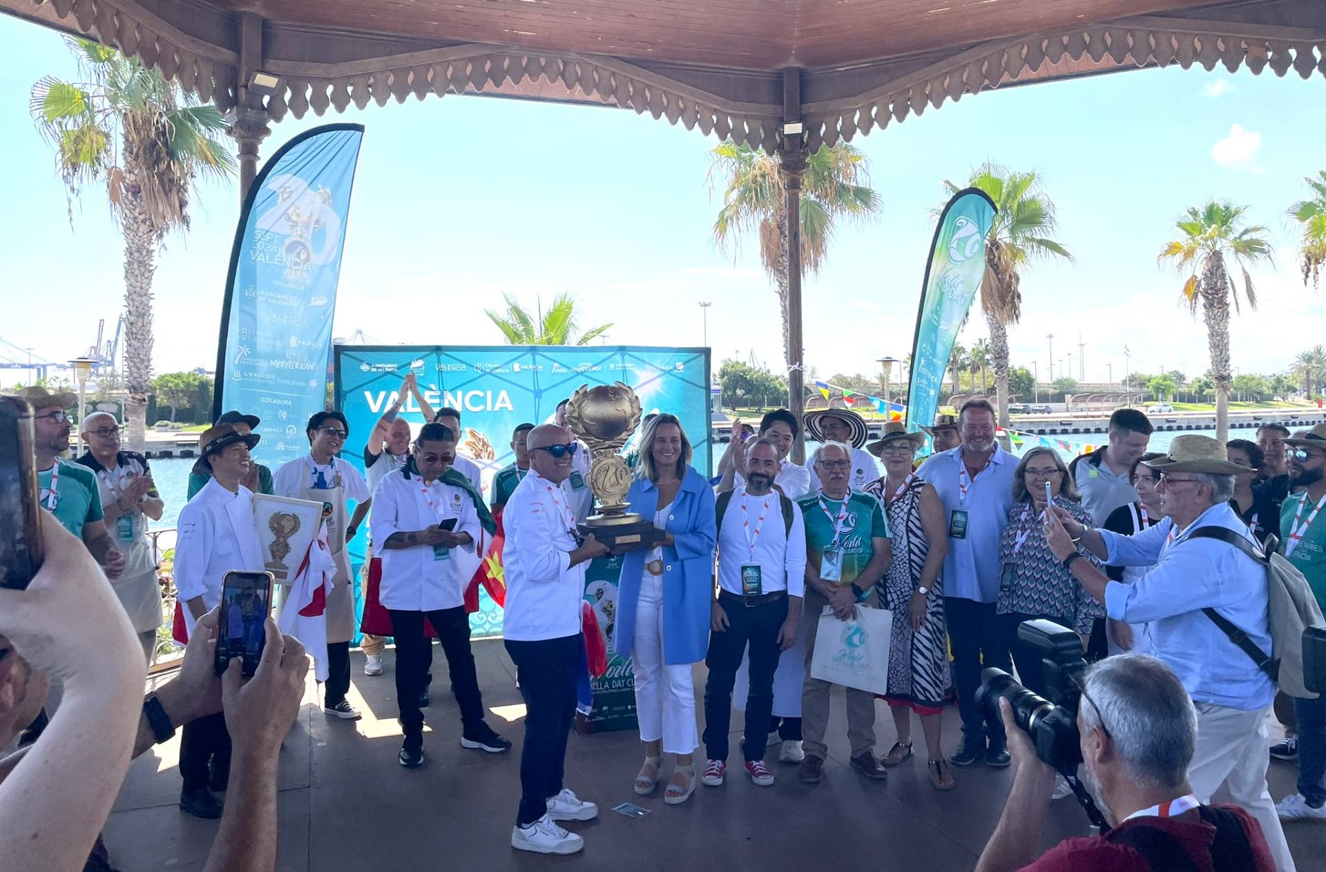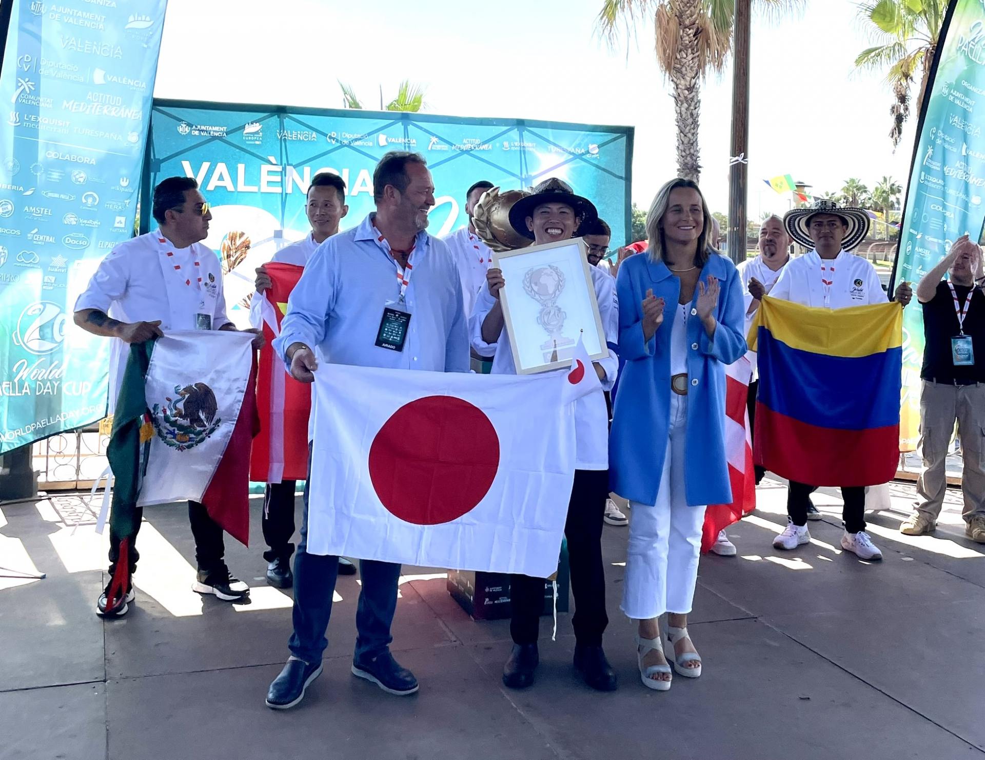 そしていよいよドキドキの結果発表。まずは第3位は日本!! 昨年の優勝には及びませんでしたが、3位入賞は素晴らしいことです。バレンシア風パエリアにも使う鶏肉とモロッコインゲンのほかに、日本らしい発酵キノコに柚子胡椒、照焼ソースを使ったパエリアでした。私も試食できたのですが、照り焼きソースの甘みがおいしく、これは外国人も好きな味だなと思いました。ちなみに、準決勝は、牡蠣、チョリソ、白ネギ、パプリカ、自家製牡蠣味噌、あおさ、すだち、そして山椒を使ったパエリアで通過しました。
