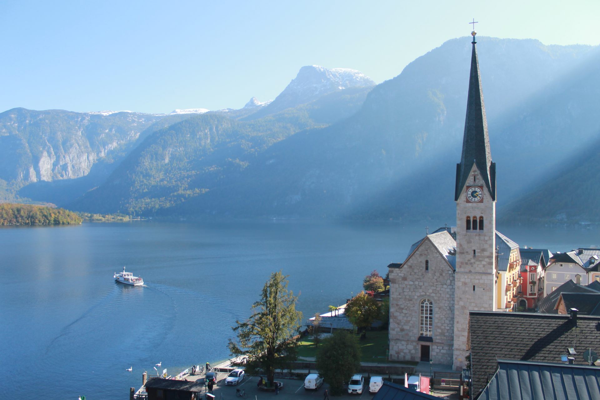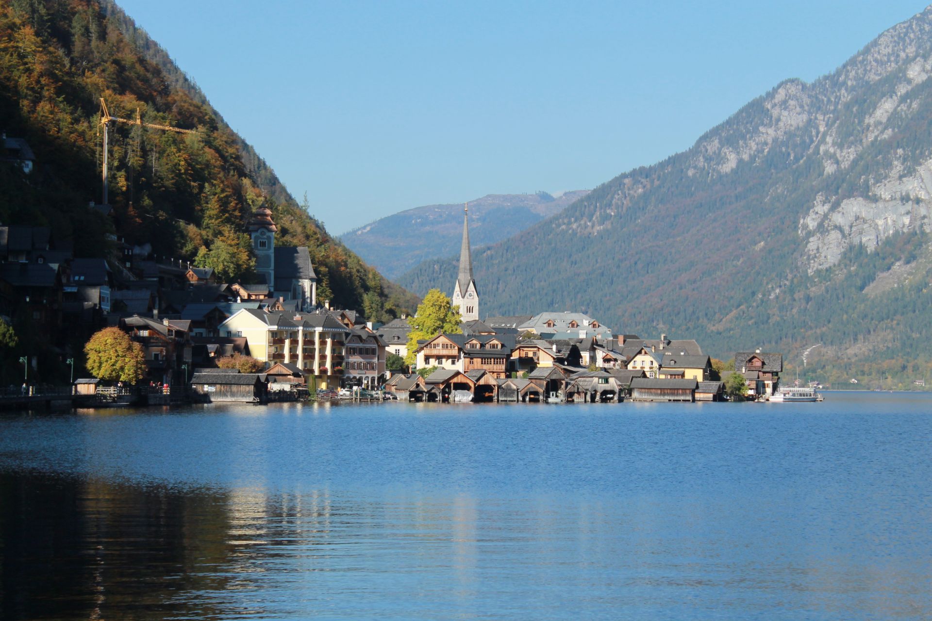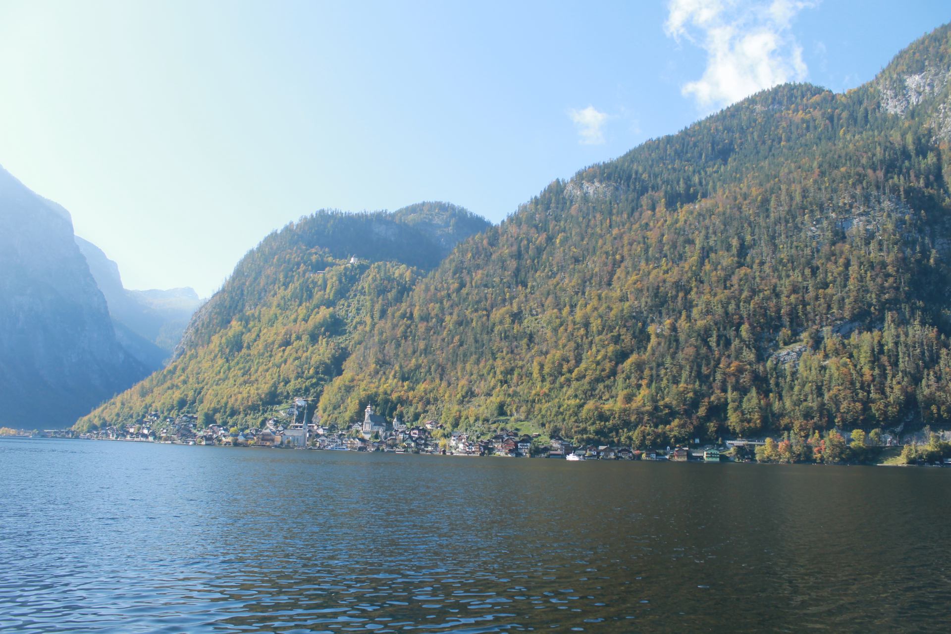 また村内を端から端まで歩いても20分もかかりません。紅葉の景色の下、中心にあるマルト広場や家々といった街並みを眺めながら歩くだけでも、十分ハルシュタットを満喫することができます。
