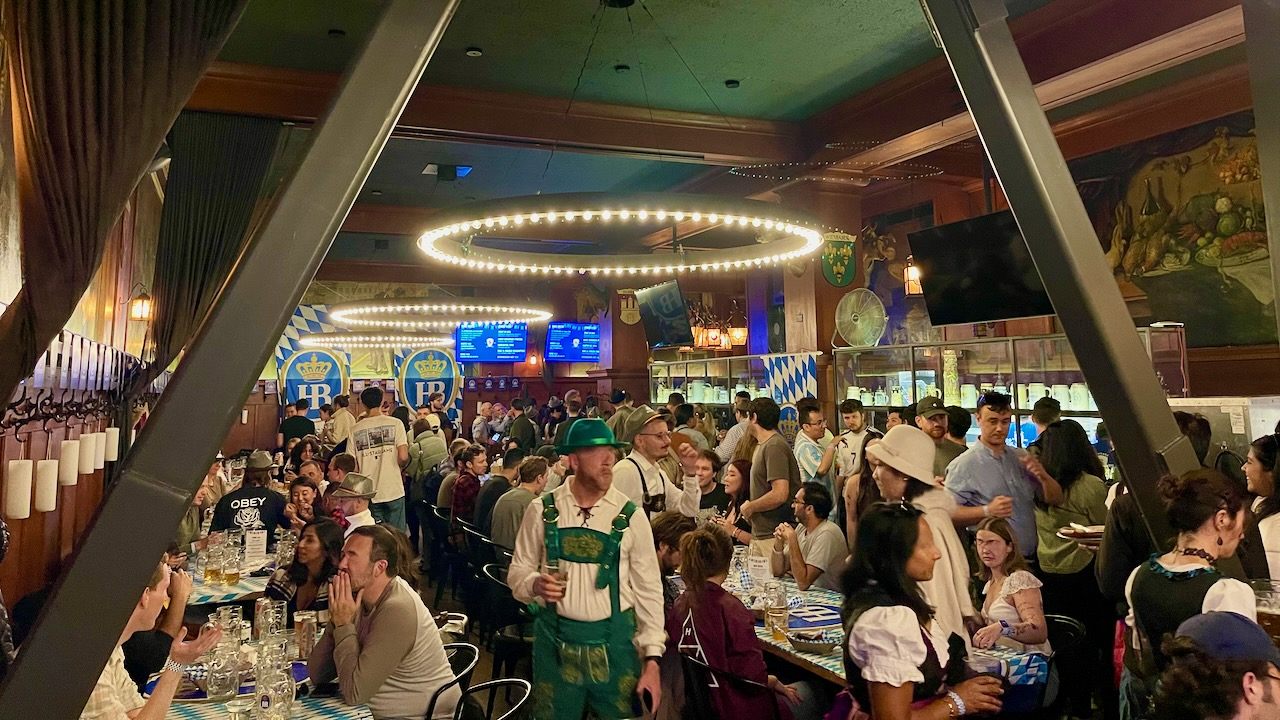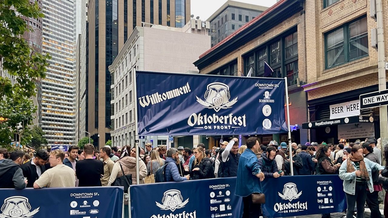 秋(10月)に仕込んだビールは年を越し夏を過ぎ、次の秋に仕込む前に余ったビールを飲む事から始まったと言われているオクトーバーフェスト。毎年9月、ドイツ・ミュンヘンをはじめ世界各地にビールの祭典が開催されます。サンフランシスコでもシュローダーズ(Schroder's)が例年ブロックパーティをするのですが、今年はサンフランシスコとのパートナーシップを組んで、カリフォルニアStとサクラメントStの間のフロントStにあるビアレストラン3店舗のイベントとなりました。