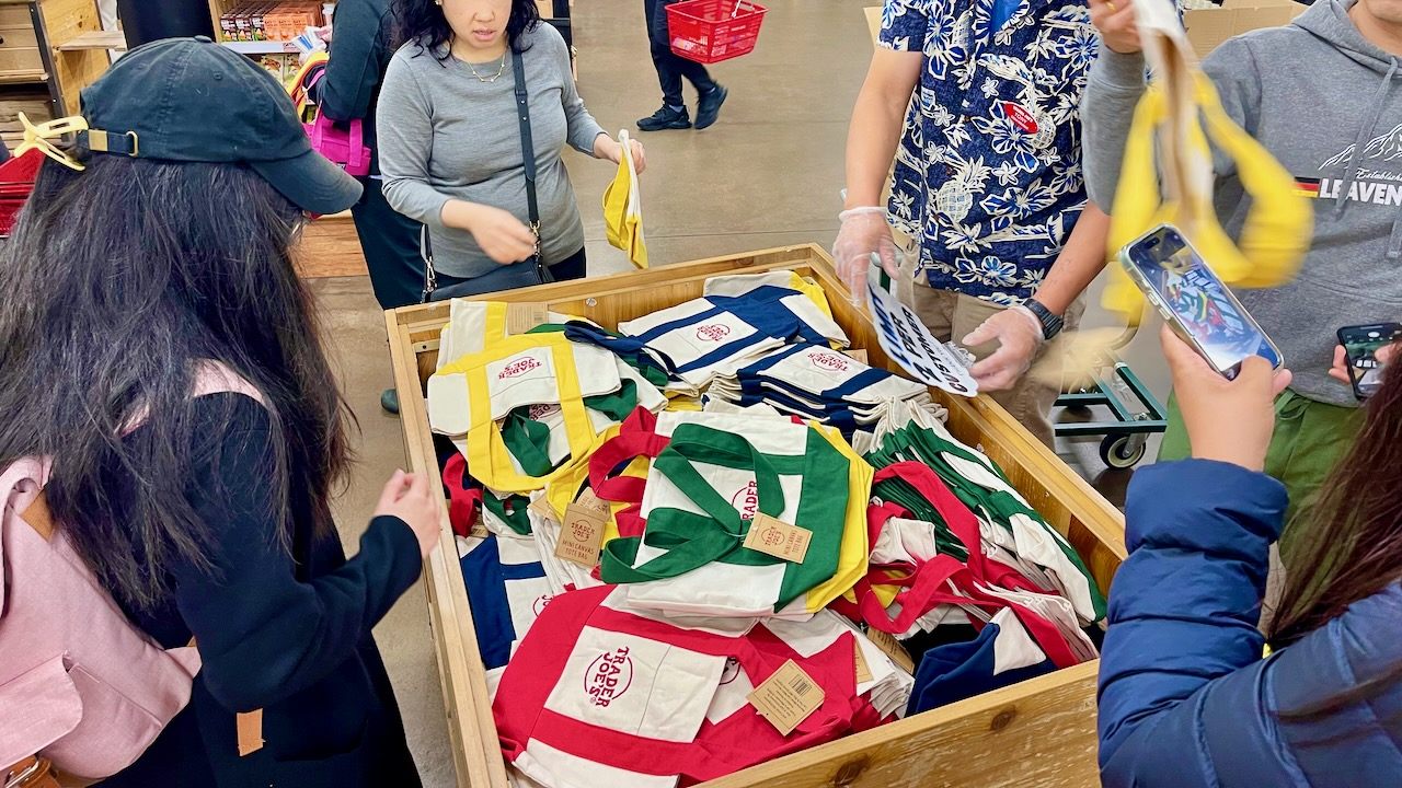 9月後半に再販される噂があった、トレーダージョーズ(Trader Joe's)のキャンバスミニトートバッグ($2.99)が9月18日に販売されました。春先に発売したものは、すぐプレミアがついて桁違いの価格になりました。今回は買い占め防止(転売目的防止?)の為か購入の枚数制限がありました。買いに行ったサンフランシスコ市内トレジョ3店舗は、1人2枚まで。近郊のトレジョは、色違い4枚までの制限があり、家族を借り出した知り合いもいました。