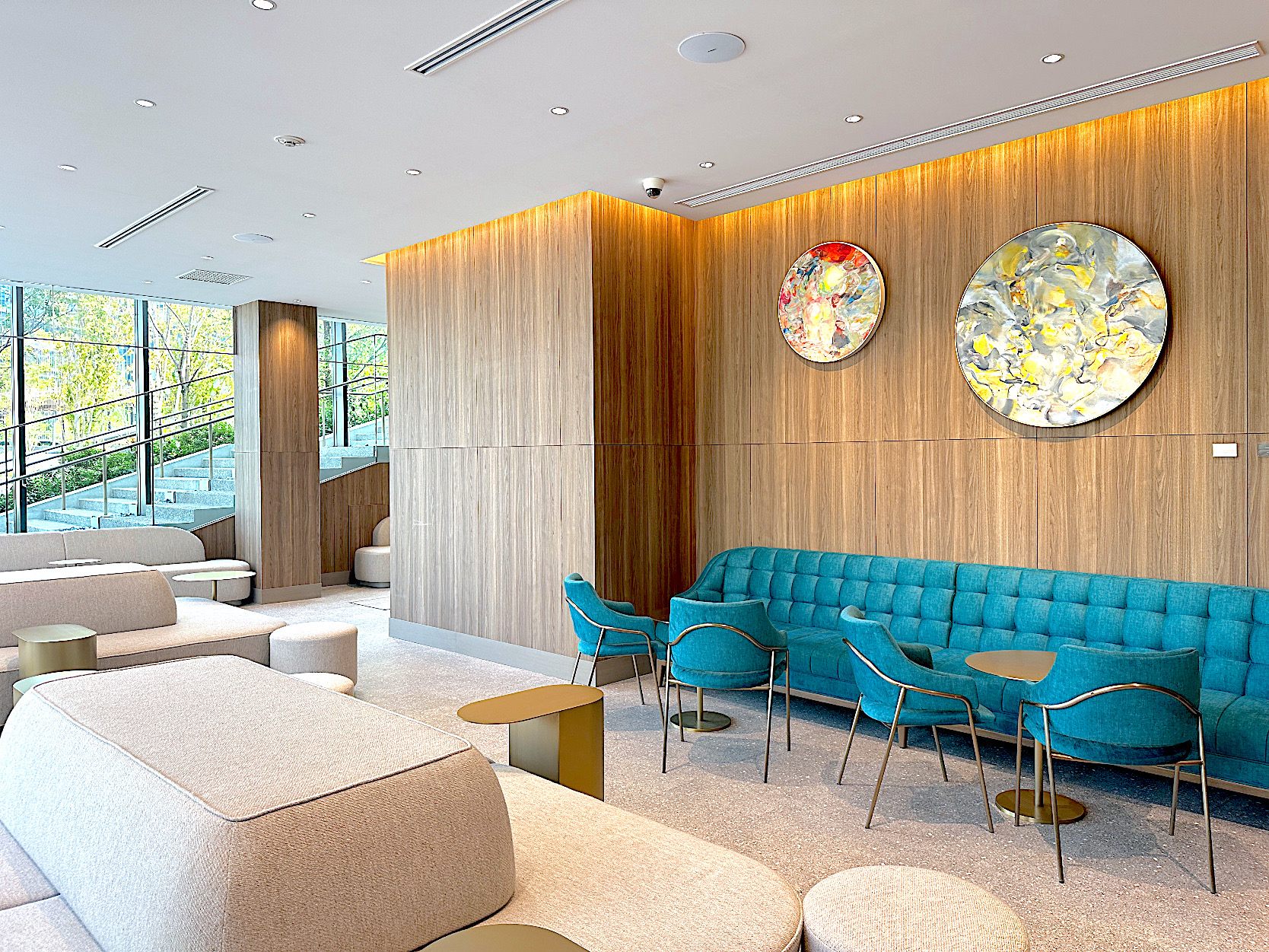 地下はラウンジスペースです。本物のアート(油絵)が展示され、上質な空間が広がっています。
