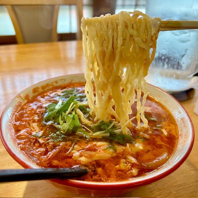 このラーメンはあっつあつで、やけどしちゃいそうです。でもそれがいい所で、汗をかきかき食べるのがおいしいのです。トマトとチーズとラーメンの麺がよく合ってくせになっちゃいそうです。