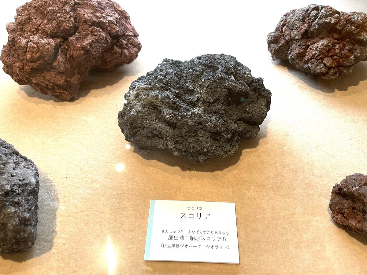 伊豆半島を代表する山のひとつ、伊東の大室山は、このマグマしぶきであるスコリアが積もってできたものです。
