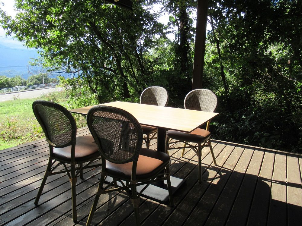 前の道路からは、大きく広がる南アルプス連峰を眺めることができます。景色のいい高台にあるお店です。