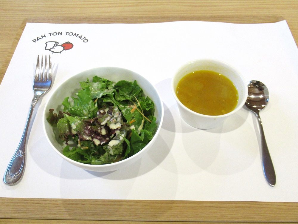 単品でもオーダーできますが、セットにすると、サラダとスープとドリンクがつきます。