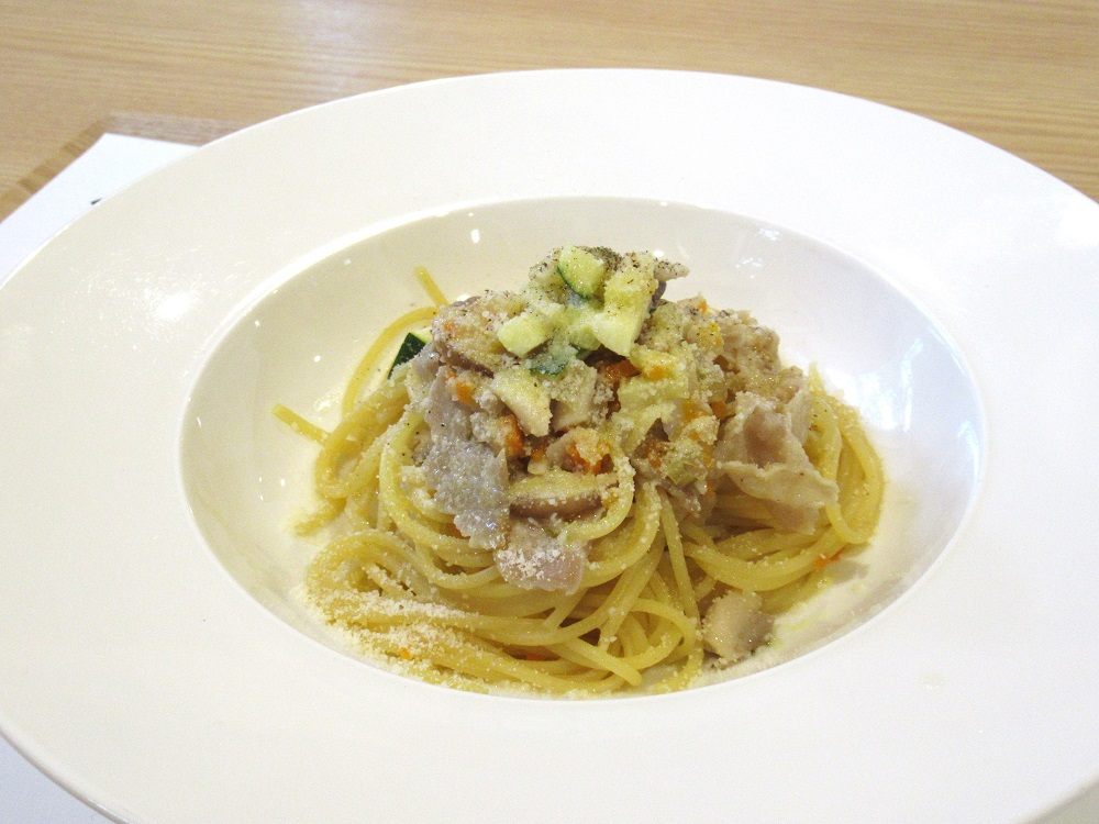 この日の今週のパスタは「塩豚と椎茸の塩味スパゲッティ」でした。