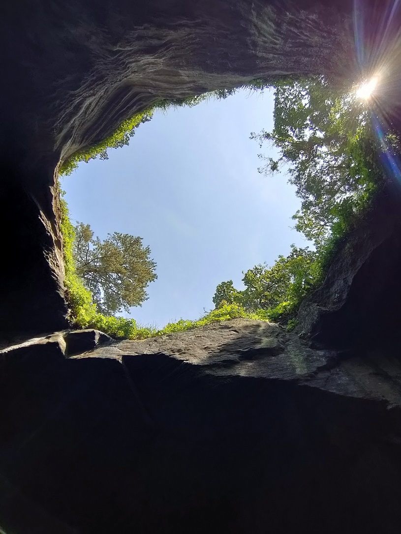 洞窟の中はぽっかり空いた頭上から光が差し込みとても綺麗です。
