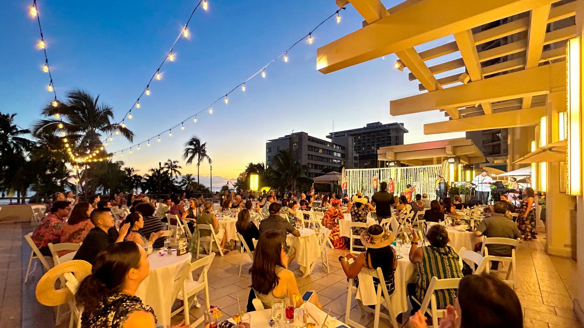 ワイキキビーチを見晴らすナレア テラスで、ハワイの夕風に吹かれながら、ディナーに舌鼓を打ち、カクテル片手にフラショーを楽しみ、ハワイ王朝時代に思いを馳せてみませんか? これぞ、ハワイ旅行の醍醐味です。