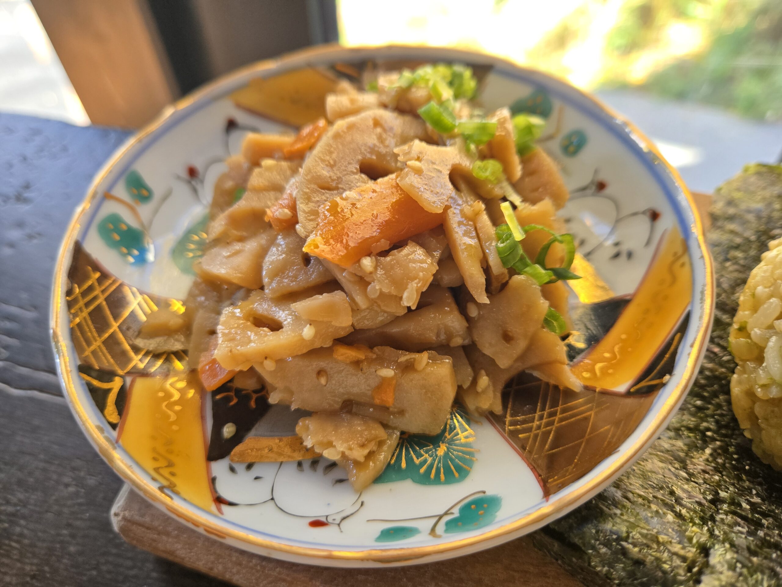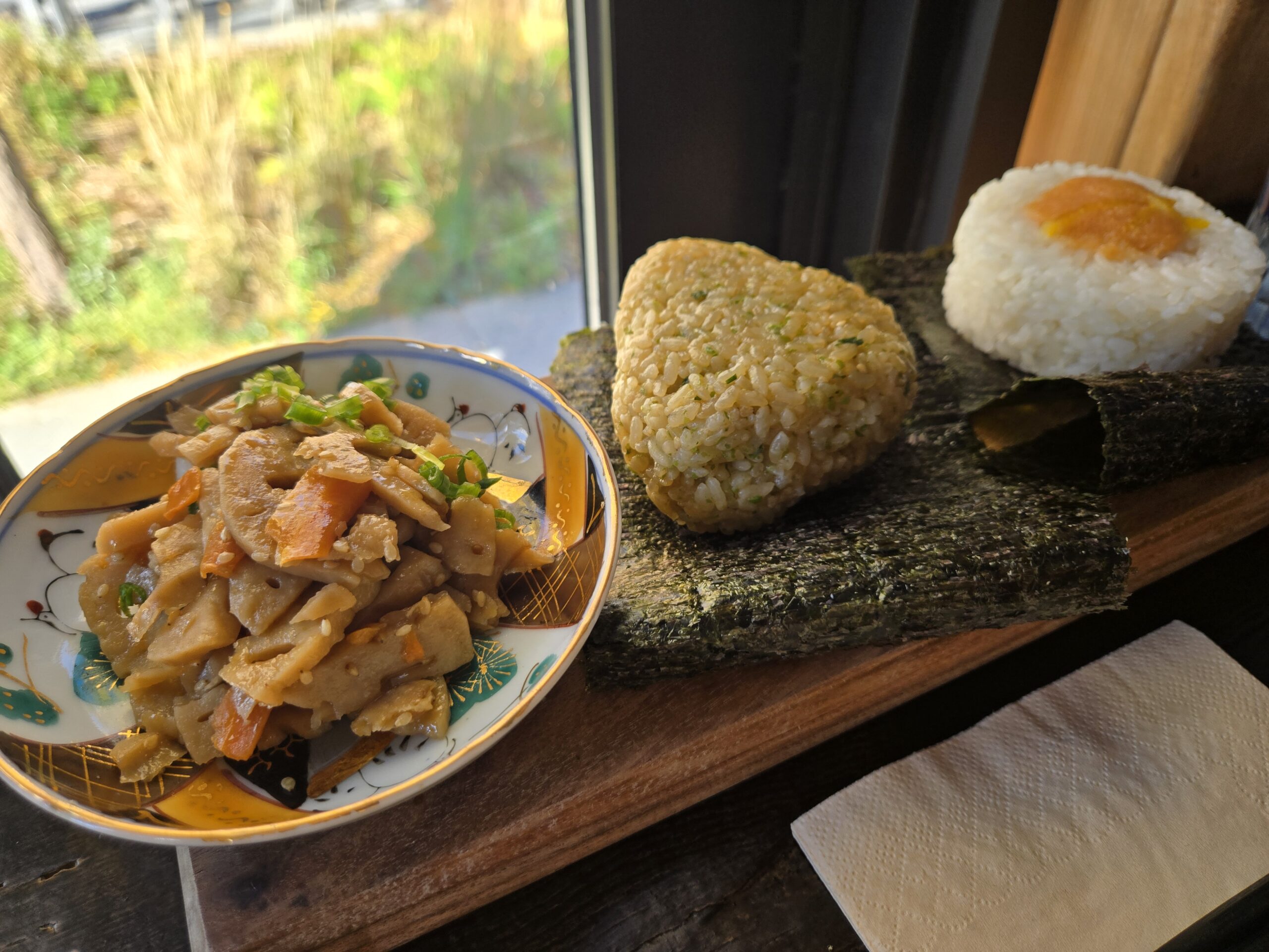 取材をした時に私が選んだメニューは、「悪魔のおにぎり」「ゆず明太」と「れんこんのきんぴら」です。