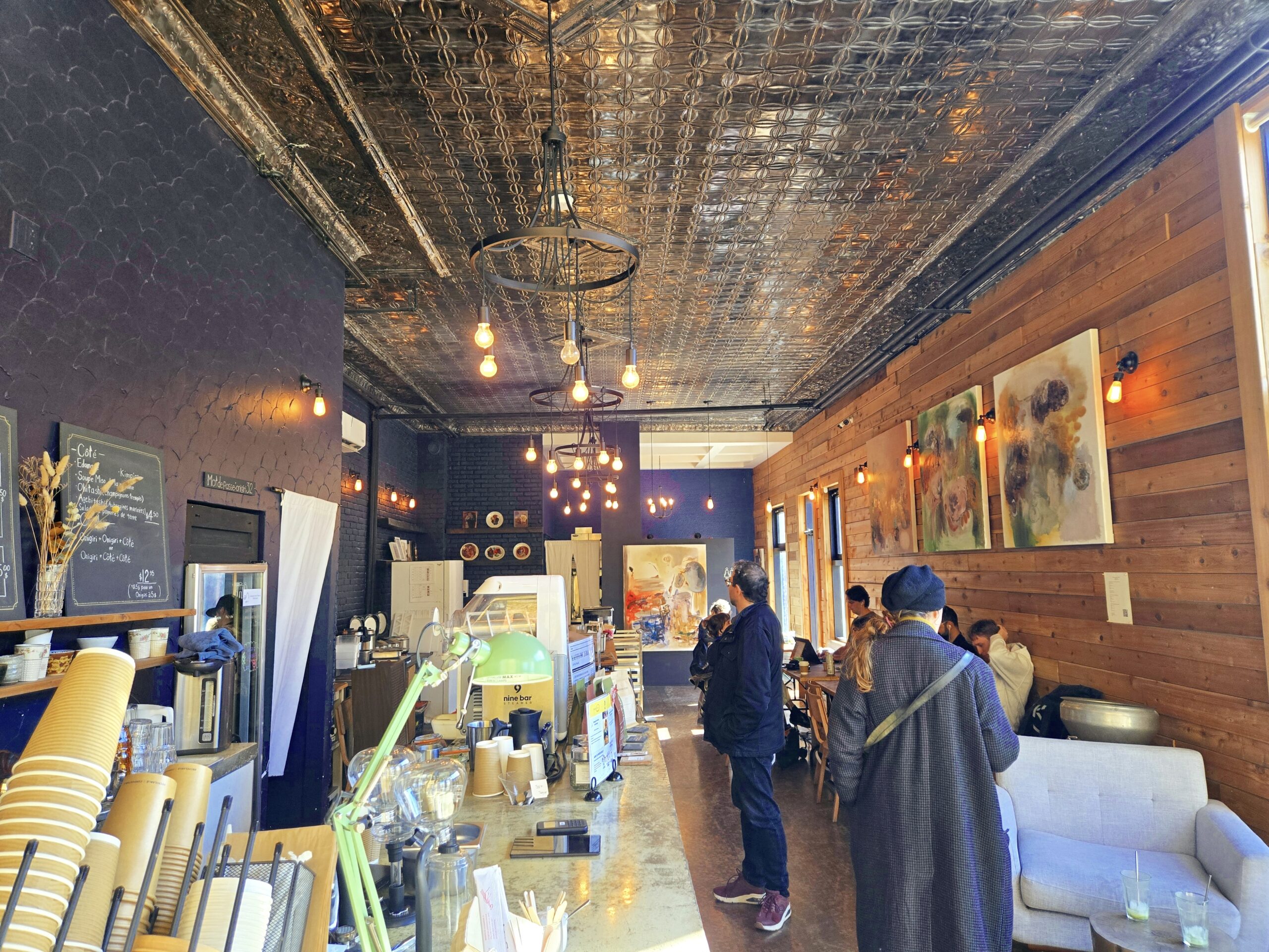 ドリンクメニューはコーヒー、モントリオールで大人気の抹茶ラテやほうじ茶ラテもあるので、食事に続いてコーヒータイムもここで・・・と長く居たくなるような空間なので、インターネットの口コミサイトでも「カジュアル」「居心地がよい」と高評価されています。