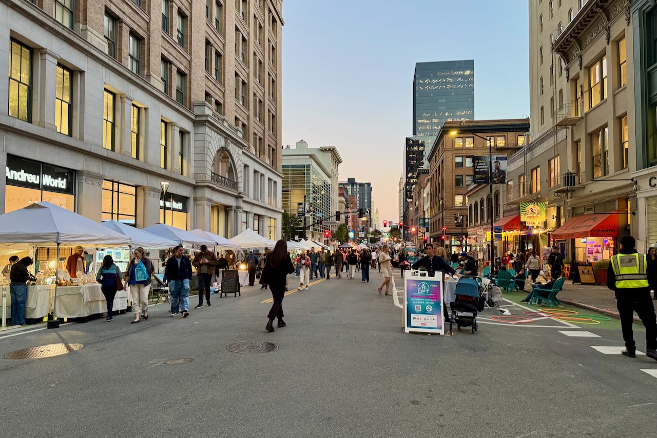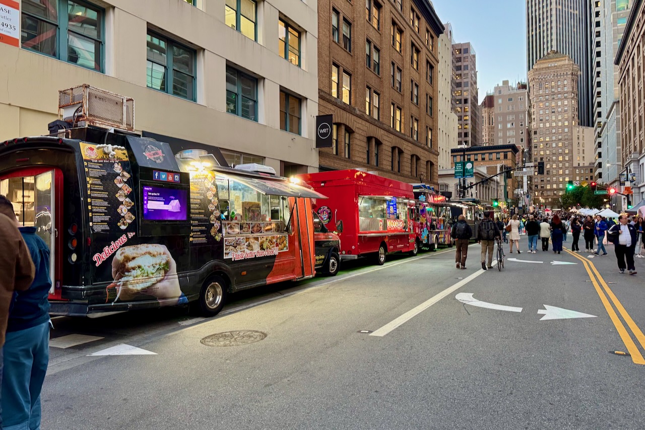 昨今、イベント参加自体にお金がかかり、しかも安くない‥‥と思っている方へ朗報。毎月第一木曜日の17:00〜22:00マーケットStから南側2ndストリートを封鎖して入場無料のストリートイベントが開催されています。ライブミュージックやゲーム、フード&ドリンクに雑貨販売ブースに隣接しているレストランでは臨時のアウトドアダイニングでサービスがあったり、普段は渋滞する道路を歩けてなんか嬉しいです。イベントブライト(eventbrite)のサイトから必要な情報を入れ、数分で登録したメールに確認書が届きます(それだけ)。入場後にお酒を買う場合は、IDを提示しリストバンドをつけるのでID必須です(持っていない場合は絶対に買えません)。昨日(11/7)は、穏やか秋晴れで暖かさが夕方まで続きオフィス帰りの人たちもたくさんいました。