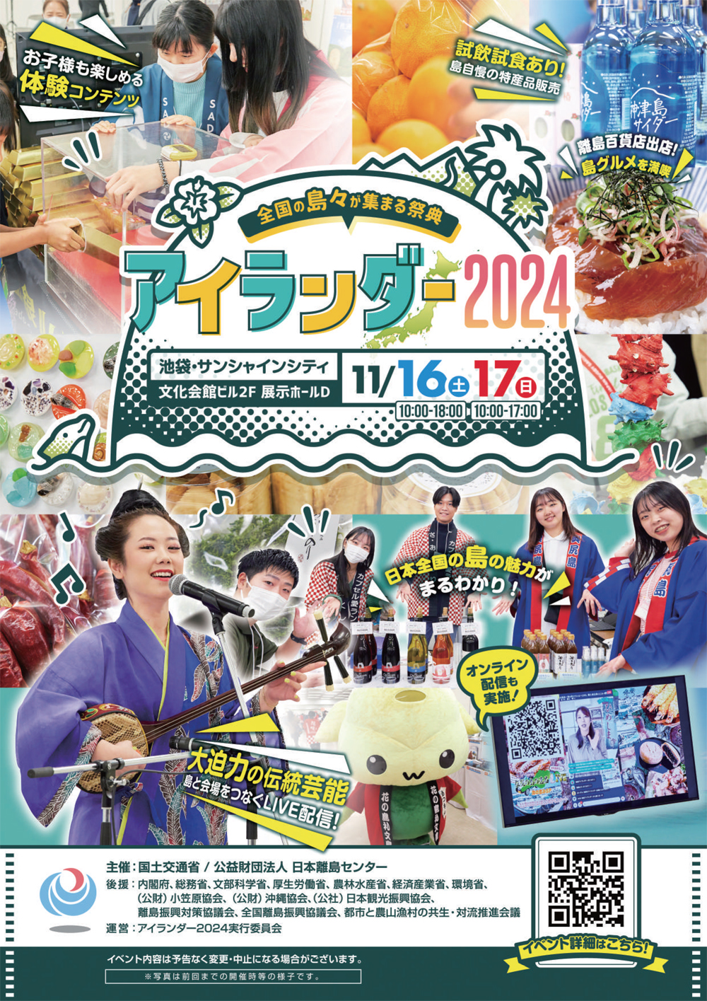 2024年11月16日(土)17日(日)に開催される「アイランダー2024」に小笠原諸島ブースが出展します。全国から170以上の島々が集まるイベントなので小笠原の情報・特産品の他にもさまざまな島のステージイベントやご当地ぐるめなどが楽しめます。