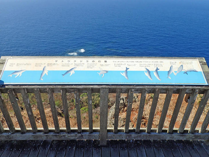 まずは陸上からの観察にはウェザーステーション展望台のように海が広く見渡せる場所がおすすめです。またウェザーステーション展望台にはザトウクジラの行動を紹介した解説パネルが設置されています。