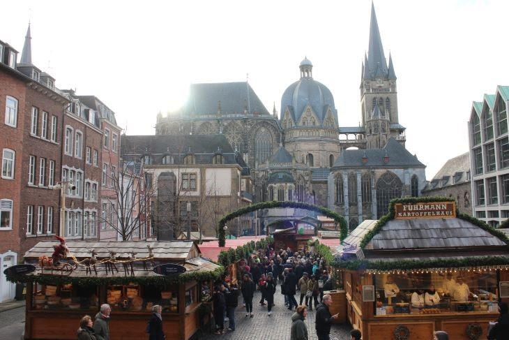 アーヘン大聖堂前にクリスマスマーケットが広がっています。