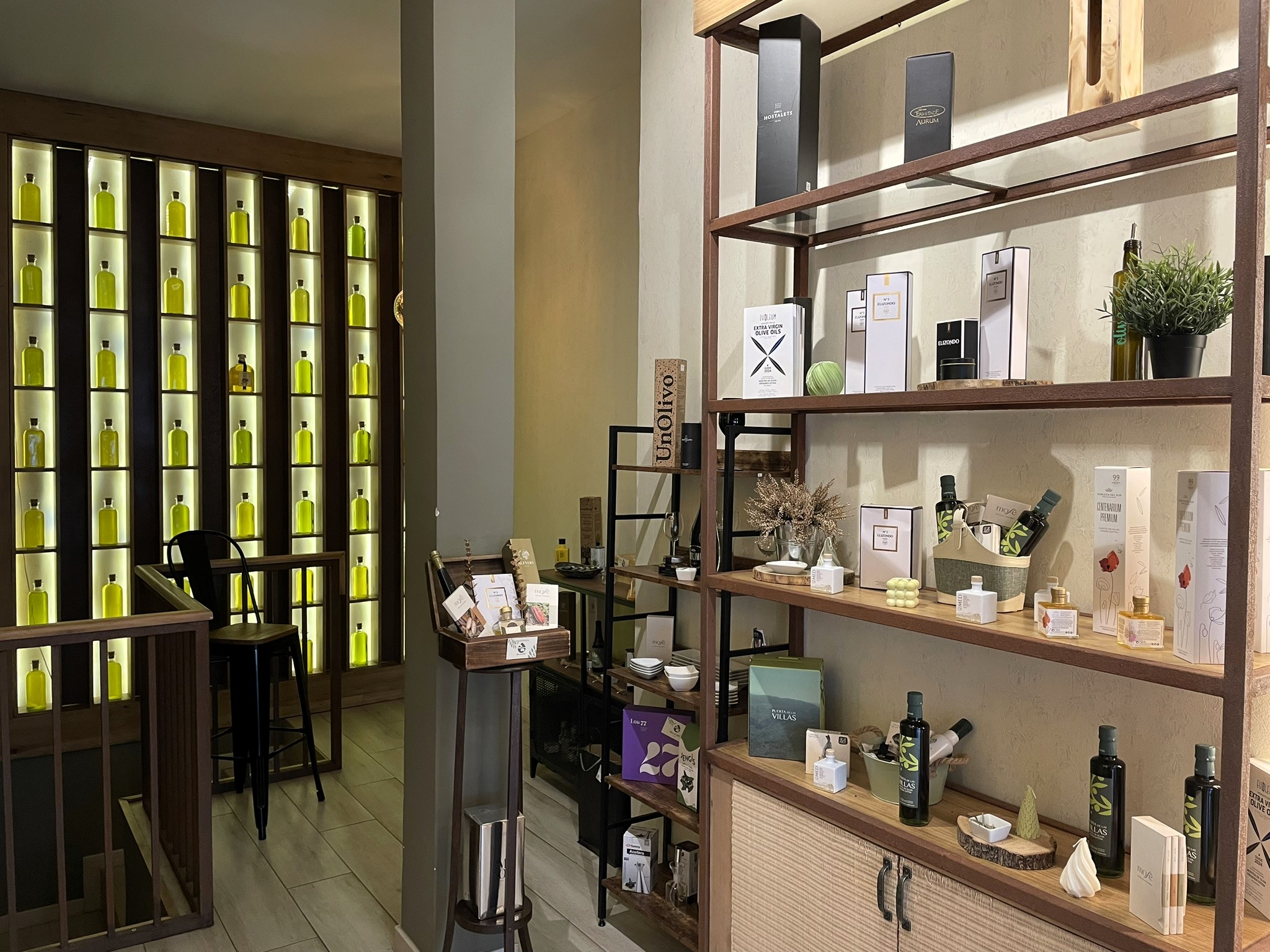 そんなサラマンカ地区にあるオリーブオイル専門店Alma del AOVEのオーナーのアルムデナは、家族がオリーブ畑を所有しているので子どもの頃からオリーブ文化に触れて育ってきたそうです。国外に住んでいる時期もありましたが、スペインの専門機関でオリーブオイルのテイスティングを学んだ経験もあり、オリーブ愛に溢れています。その思いが2021年に専門店をオープンするきっかけになりました。洗練された地区にあるのにふさわしく、お店もとってもおしゃれ。パッと見たらオリーブオイル専門店には見えません。