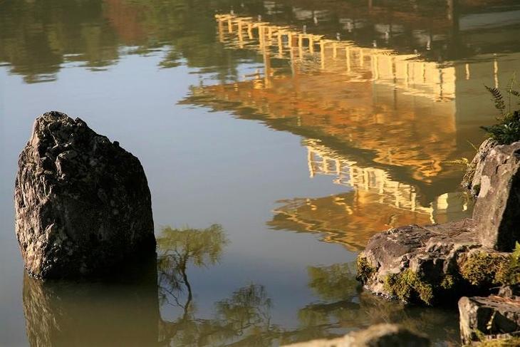金閣寺を映す池は、鏡湖池「きょうこち」。