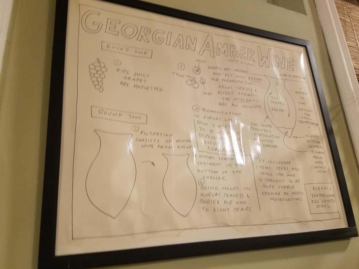 まずは何といってもジョージア料理に欠かせない赤ワインから。おすすめは自家製ワインで、壷のようなこだわりの容器に入れてサーブしてくれます。一般のワインよりちょっと甘め、でもスッキリしたお味。注文する際はдомашнее красное вино(ダマーシュニェー・クラースナエ・ヴィノー:ホームメイド赤ワイン)と告げてください。