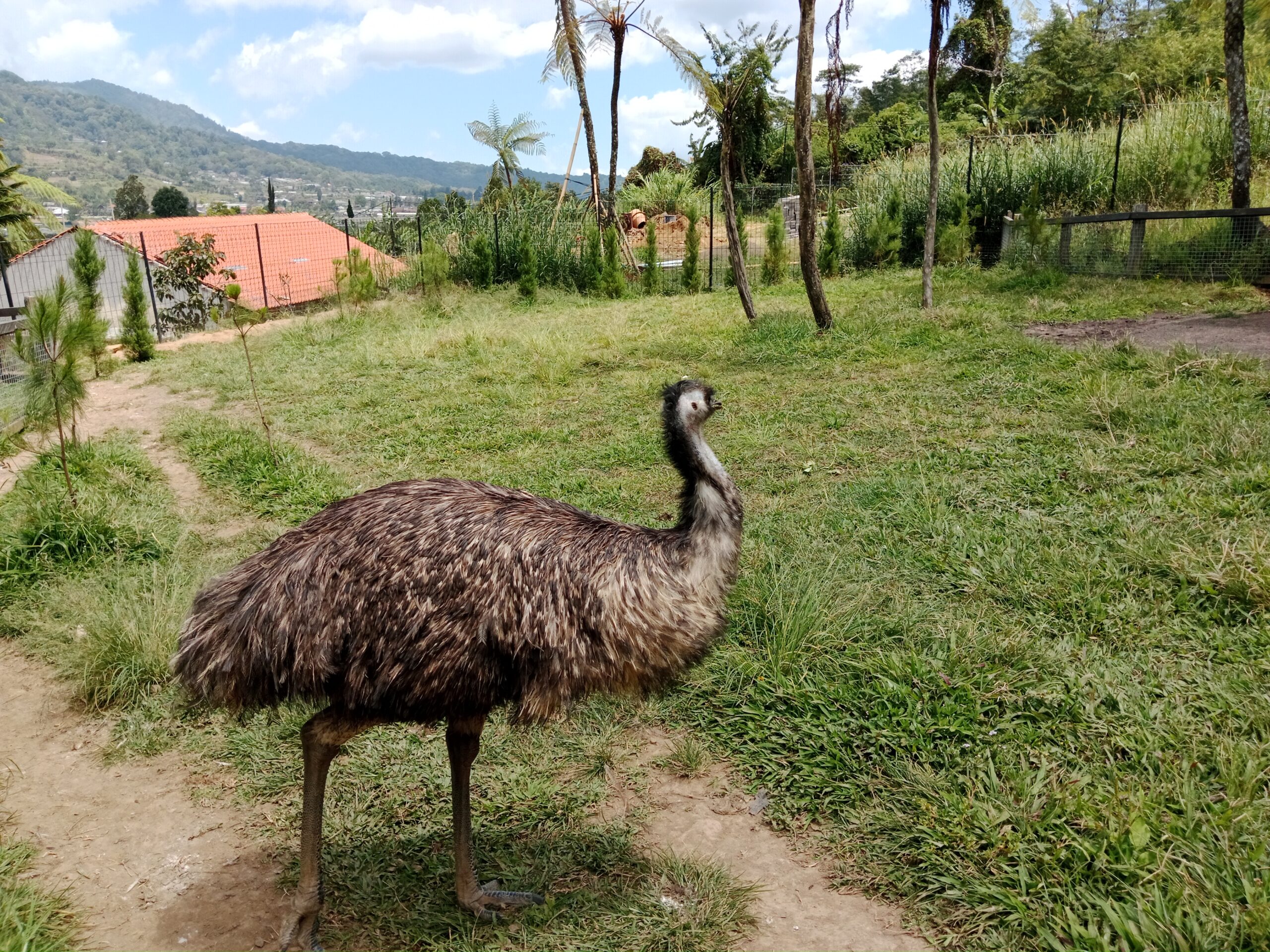 エミューは、オーストラリアにいる有名な鳥ですが、実際に観るとまるで恐竜をイメージさせる容姿です。孔雀の様に放し飼いではなく、柵の中でのんびり過ごしていました。