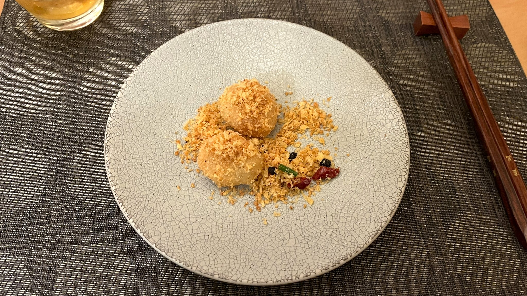 大えびのガーリックソースとタラ白子のガーリックスパイス揚げ