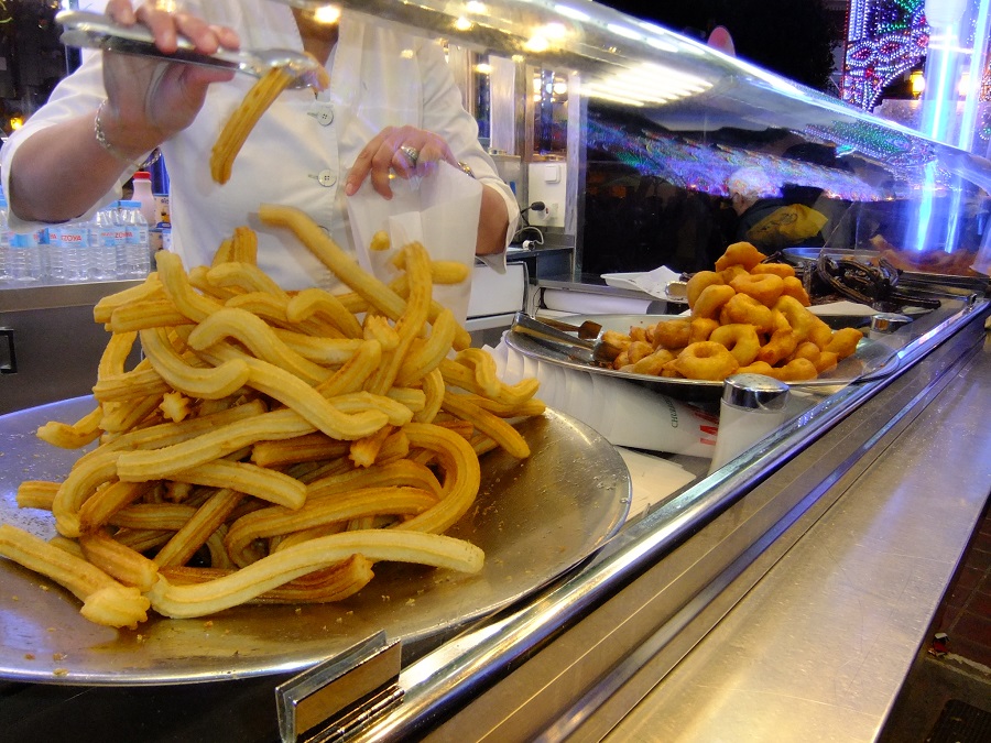 私が住むバレンシアでは火祭りの時期になると町のあちこちにチュロスの屋台が出ます。3月の夜はまだ寒いことが多いので、温かいホットチョコレートと一緒に食べるチュロスは格別です。
