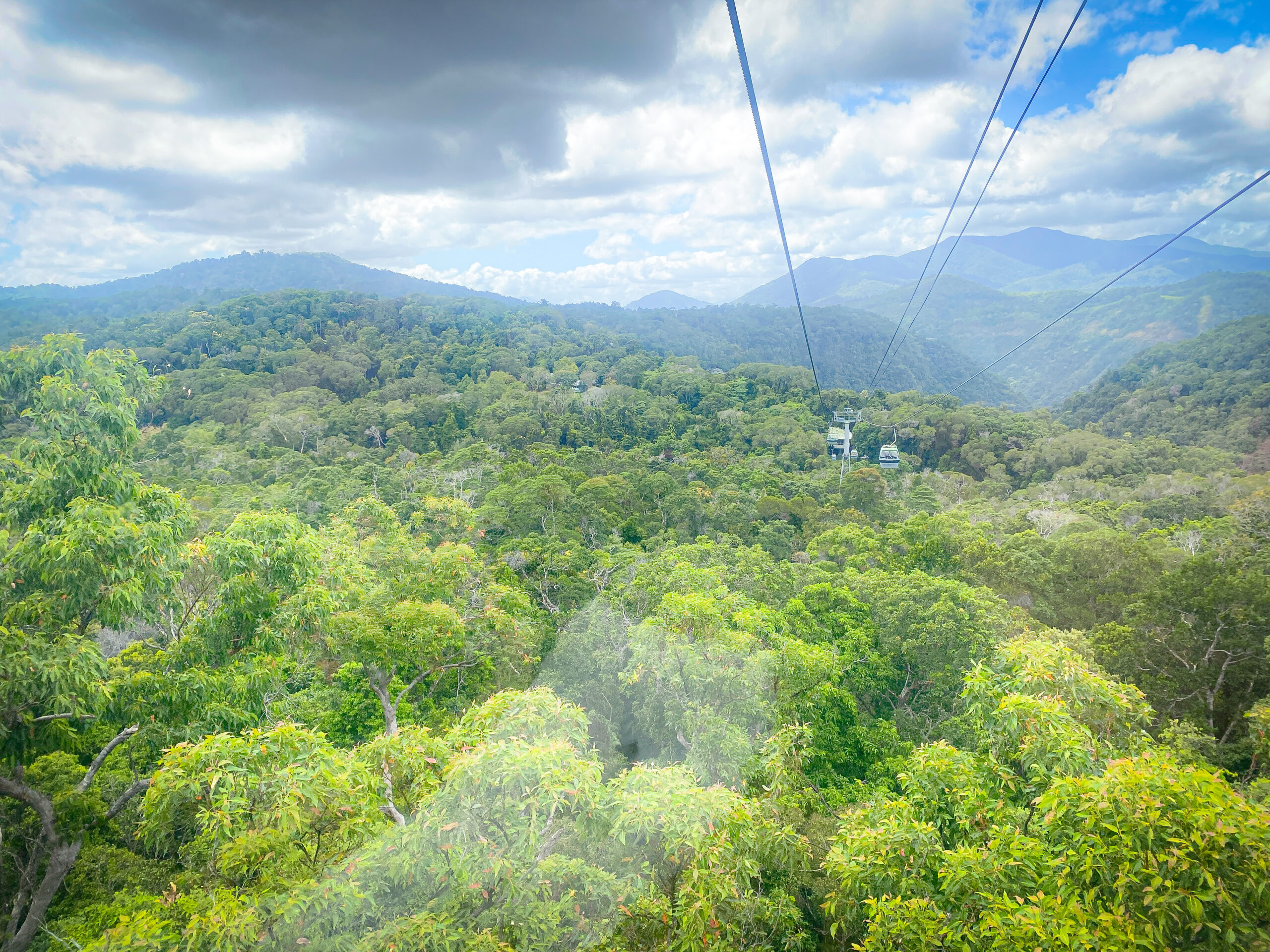 スカイレールに乗車中は、見渡す限り、ひたすら熱帯雨林が続きます。地表から約40m、標高545mの山を越えて滑空する時間は爽快。ほとんど横揺れしないので、乗り物酔いすることなく安心して楽しめます。