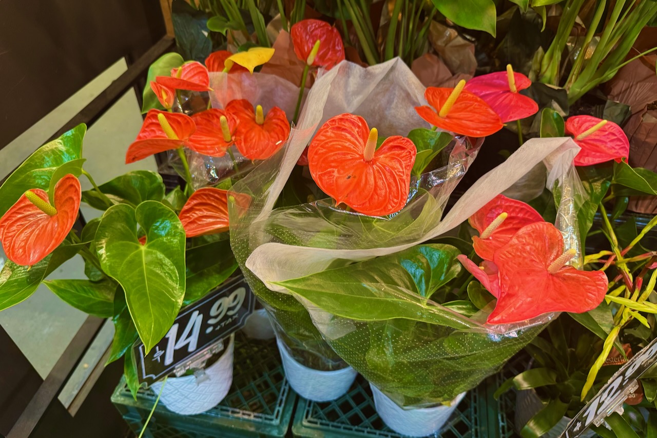 そー言えば、毎年この時期にお花屋さんにはアンセリウム(鉢植え)を見ます。近所のトレジョ(Trader Joe’s)では、$14.99と決して安くないけど1〜2日で売り切れるほどです。ずーっと不思議だったのですが、形がハート型♡みたいですよね。このお花コロンビア・エクアドル辺りが原産でハワイでは「ハート♡オブ・ハワイ」と呼ばれて、バレンタインデーなどに切り花を送ったりするそうです。そして、ビッグアイランド(ハワイ島)は世界有数の生産地なのだそうです。