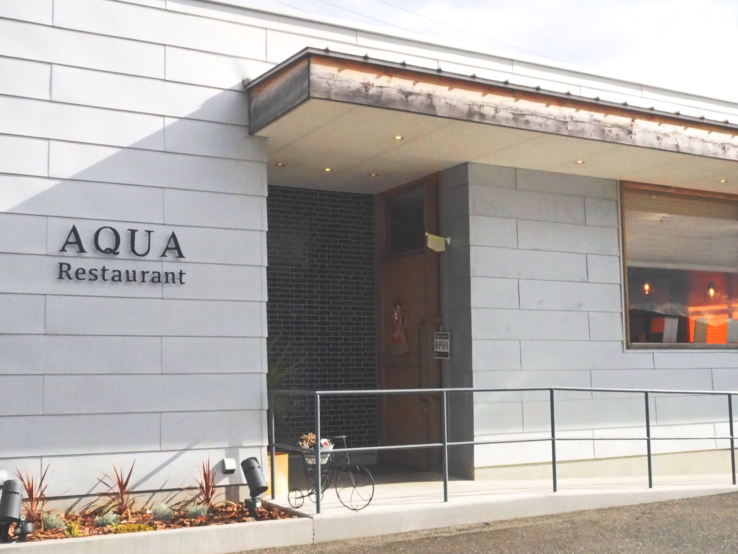 こんにちは。岡山特派員のmamiです。前回ご紹介した髙岡神社から国道313号線を北へ7㌔程進むと、「Restaurant AQUA」があります。田んぼの中の一軒家のレストランですが、地元の方だけでなく遠くからもわざわざ食事にやって来る人気店と聞き、私も訪れてみました。