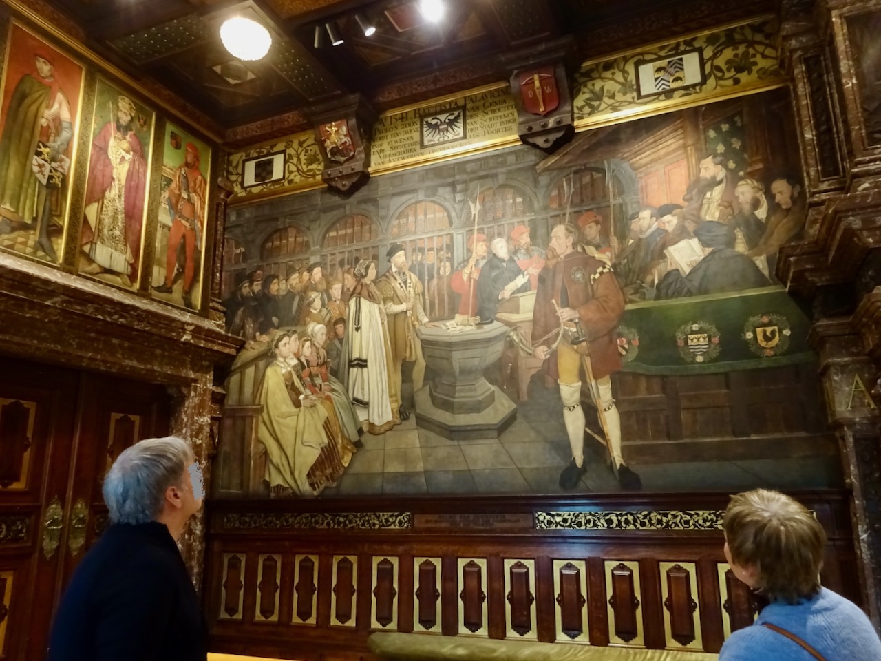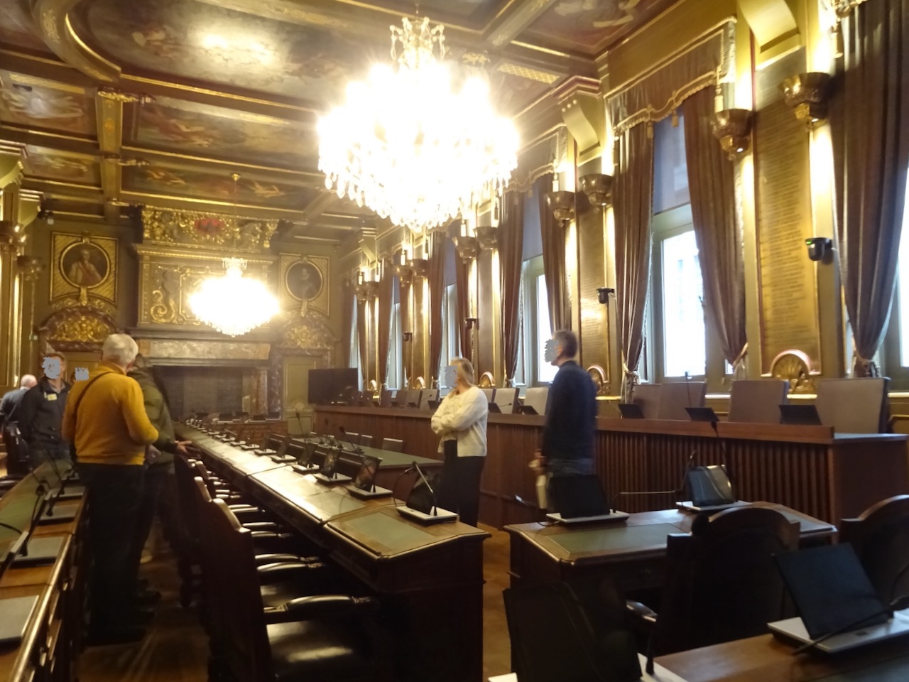 まず案内されたのは、Collegezaal(講義室)。市会議員団はこの部屋で会議を開き、日常業務と決定を下し、市議会の準備をします。更に大学の会議が行われている場所です。