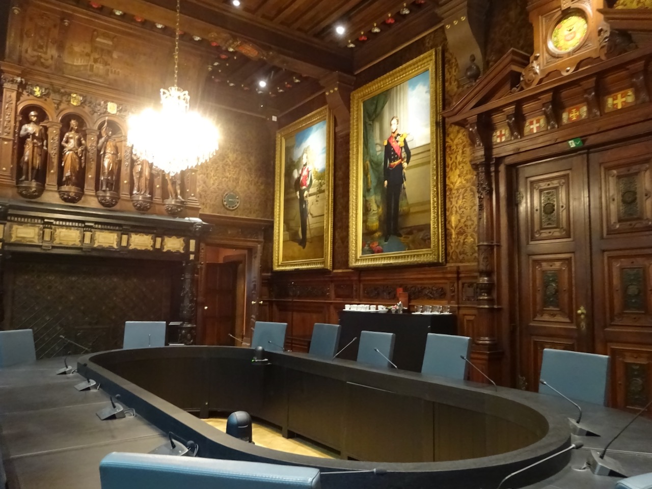 評議会室の壁には、何世紀にもわたるアントワープの市長全員の名前が刻まれた銅板が飾られています。