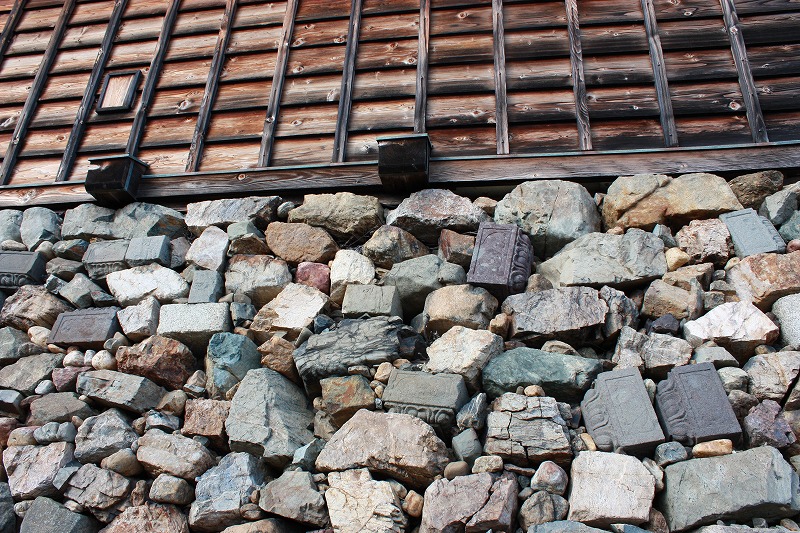 寺院を破壊し、石垣に組み込むことで支配を示そうとしたものとも考えられています。