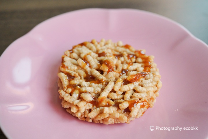 タイ・バンコク都内の百貨店内によくあるスーパーの1つ、グルメマーケット内でよく見かけるタイならではのお米を使ったお菓子、ライスクラッカーのパッケージにも描かれていました。お値段は100バーツ以下でお手頃で、タイらしいお菓子ですが、甘さも控えめ、香りも気にならず食べやすく、おいしく感じました。ちょうどタイ旅行に来ていた日本人にも食べてもらったところ、おいしいとのことでした。
