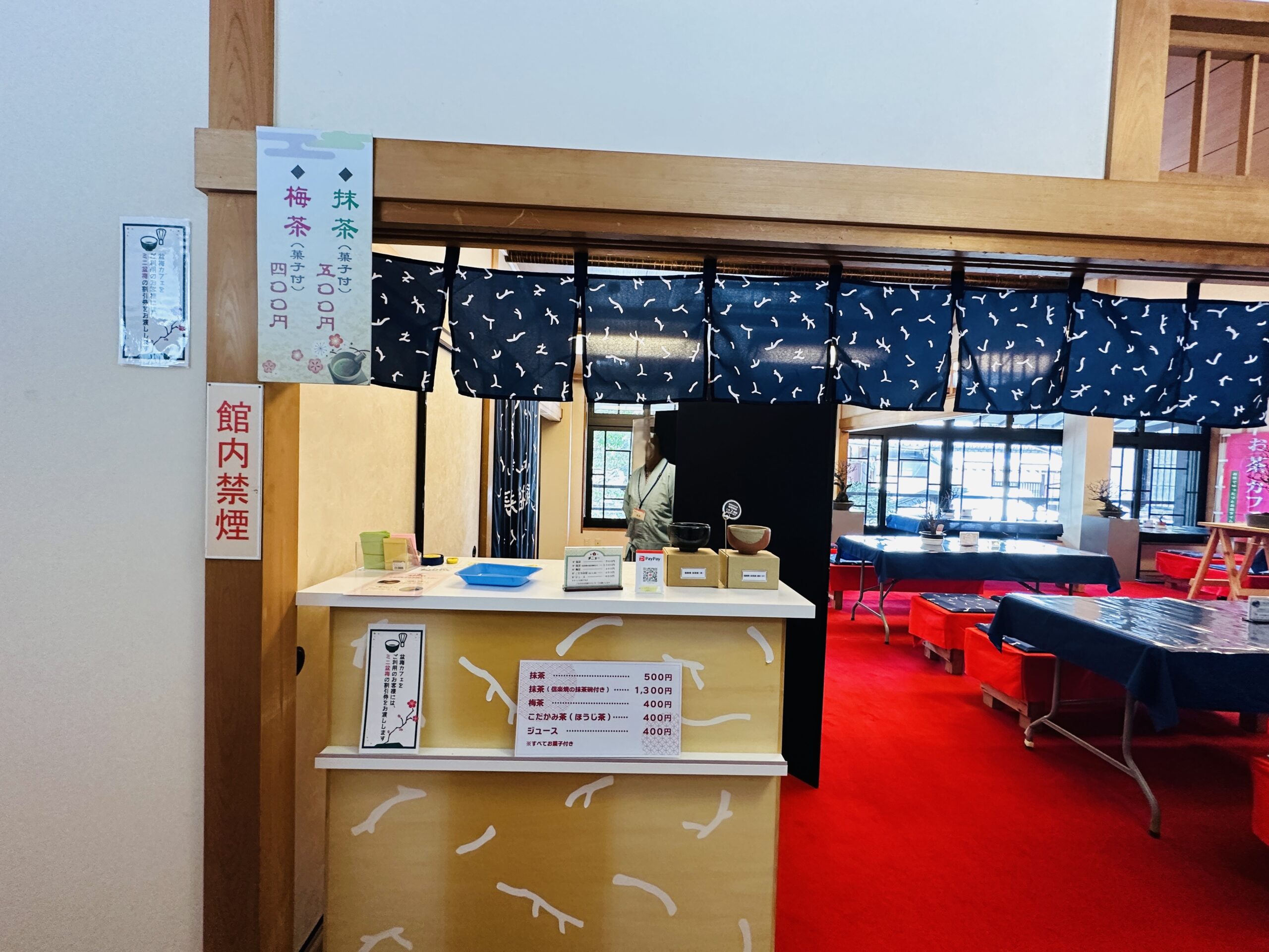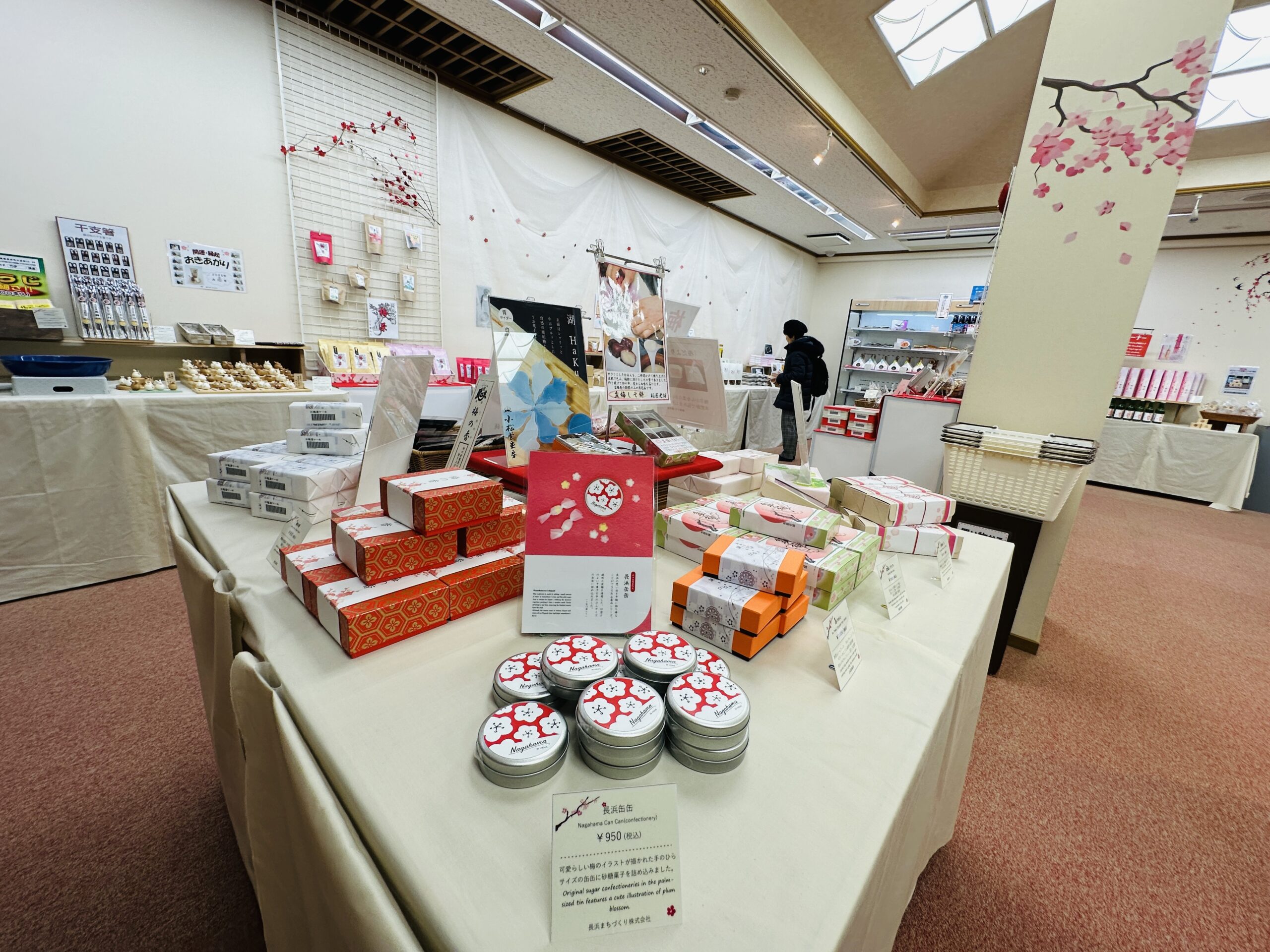 会場となる慶雲館は、明治時代に建てられた長浜の迎賓館で、昭憲皇太后の行幸啓のために建てられた歴史ある建物です。館内には、梅の香りとともに、観光客に癒しのひとときを提供するお茶席や、お土産コーナーも充実。長浜の名物や梅を使ったお土産も販売されています。