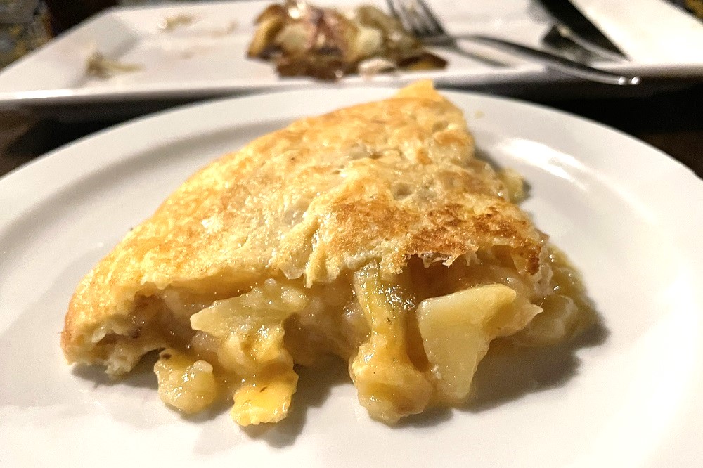 最後はトルティーヤ・デ・パタタ。トルティーヤ・エスパニョーラとも言いますね。日本でいうスペインオムレツです。これはもうスペイン人のソウルフードと言ってもいいほど、みんな大好き! どんな具材を入れてもいいのですが、基本の具材はじゃがいも、もしくはじゃがいもと玉ねぎだけ。玉ねぎを入れるか否かは永遠に続く議論ですが、私は甘みが出るので玉ねぎ入りが好きです。日本のレシピも見るとベーコンやトマトが度々出てきますが、こちらでは見たことがありません。じゃがいもと玉ねぎ以外の具材だと、ピーマンやズッキーニ、マッシュルーム、ほうれん草などでしょうか。北部の塩ダラ入りのオムレツは絶品です。