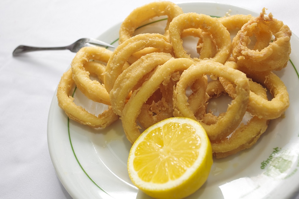 ポテトサラダがロシア風と書いたばかりですが、お次はローマ風。カラマレス・ア・ラ・ロマーナとはローマ風のイカという意味なのですが、その正体はイカのリング揚げです。なぜローマ風というのかは、ローマのイエスズ会宣教師たちが、肉食が禁じられる四旬節に魚介類のフライを食べていたことに由来するのだとか。なんと、それって“天ぷら”のルーツではないですか! どんな日本人でも胃袋をつかまれるわけです。