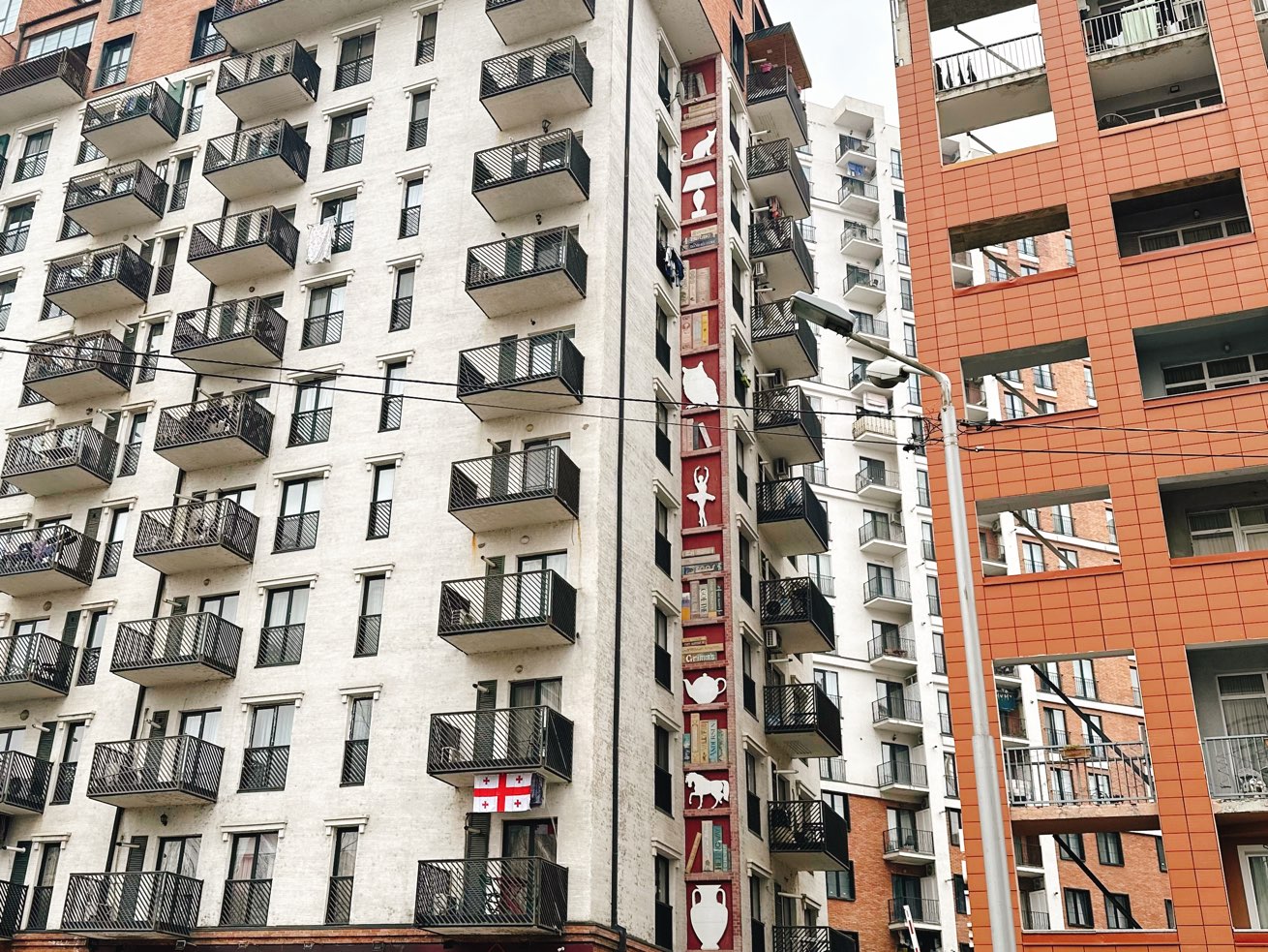 例えば、トビリシ市内で見つけた一見普通のこのマンション。よーーーく見てみてください。