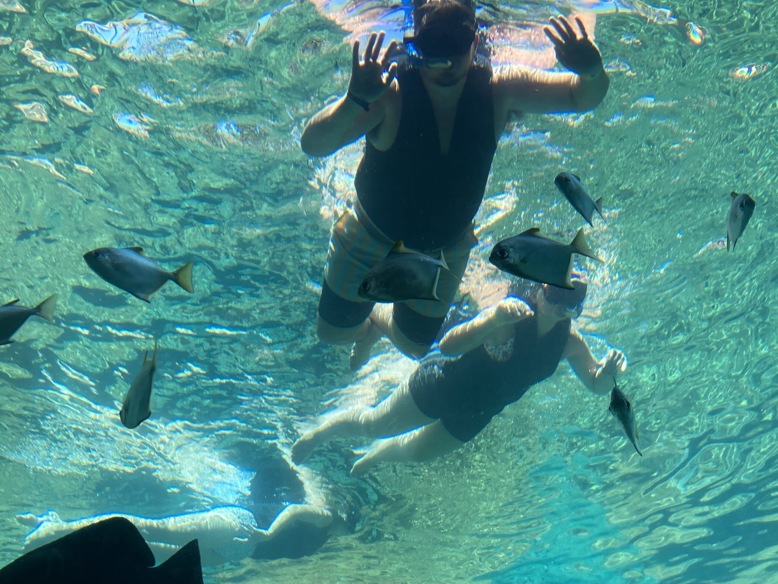 また、ここでは水族館の水槽でシュノーケリングできるアクティビティがあるので、水槽には魚だけではなく人間も泳いでいます。