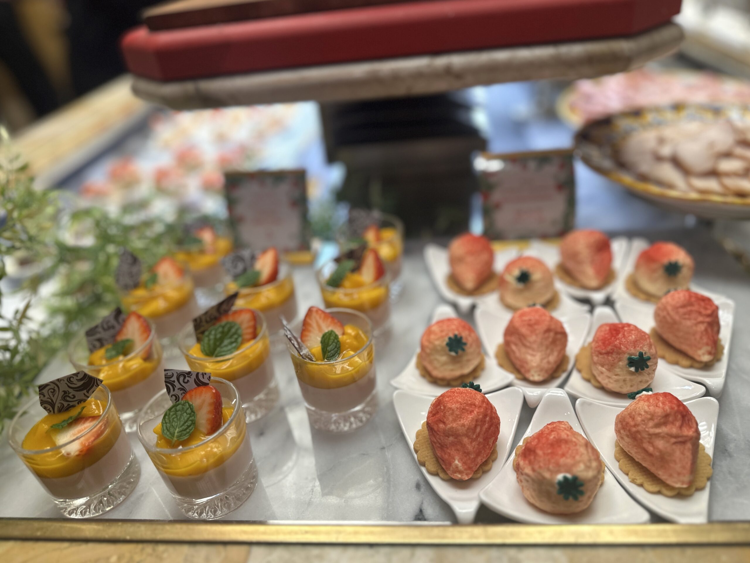 美しいディスプレイの中で、苺を使ったスイーツやセイヴォリーを味わいながら、春の季節感を存分に感じることができます。