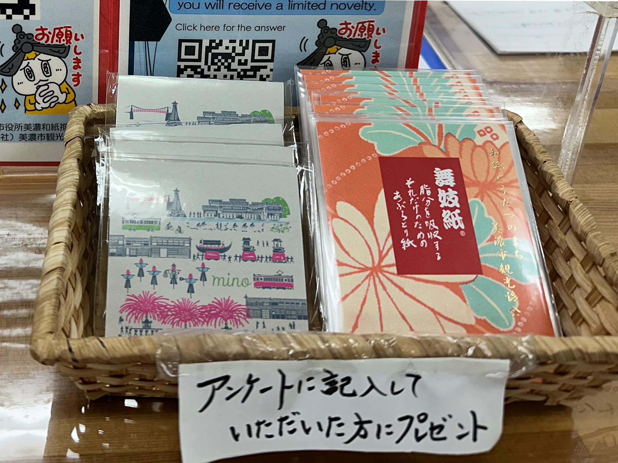 なお、「番屋」でスマホから観光アンケートに回答すると、ノベルティがいただけます。美濃の観光スポットが描かれた付箋、かわいくて嬉しい!