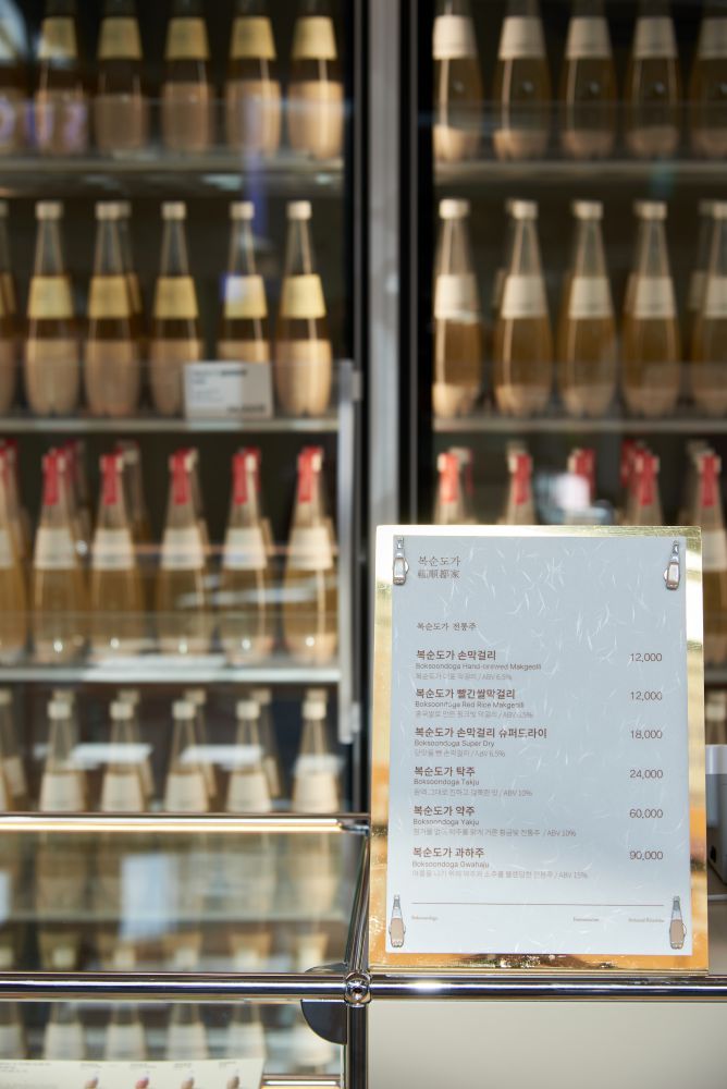 また、こちら福順都家には伝統的な醸造方法で手作りされる生マッコリ(1万2000ウォン)をはじめ、赤米でつくられたピンク色のスパークリングマッコリ(1万2000ウォン)、甘さ控えめの果実のような香りと酸味が感じられるスーパードライマッコリ(1万8000ウォン)、濁酒タイプのマッコリ(2万4000ウォン)と、いろんな種類の特上マッコリが揃っており、価格も他のお酒に比べて気軽に購入できるのも嬉しいです。